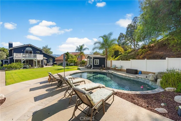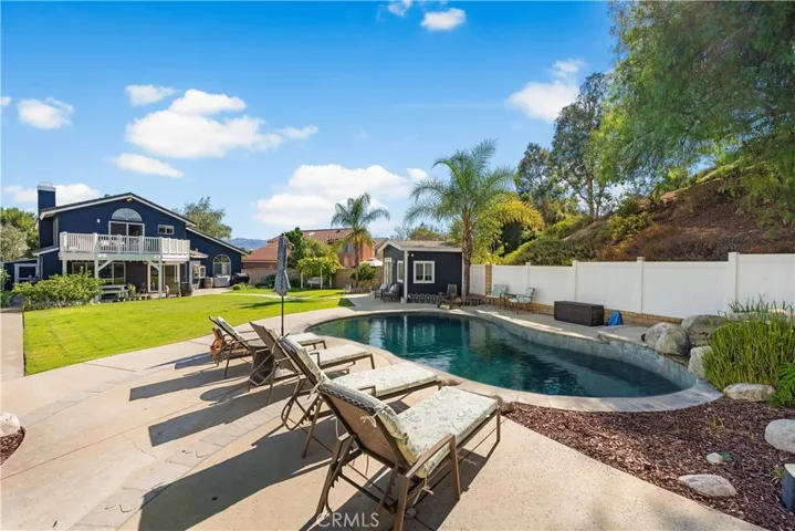 Set on one of the largest lots in the coveted Circle J Ranch community, this exceptional home offers over 10,000 sq ft of space designed for unforgettable entertaining and everyday family living. The resort-style backyard is a true showstopper, featuring a sparkling pool with a new energy-efficient pump, waterfall, updated tile, and PebbleTec finish, along with a versatile pool house ideal for a gym, game room, or future ADU. A private basketball court, flourishing fruit and vegetable garden, no rear neighbors, and new vinyl fencing create a rare sense of privacy and freedom. Inside, the open-concept family room and kitchen invite connection with a cozy fireplace, oversized island, dual sinks, recessed lighting, and included appliances—refrigerator, washer, dryer, and even the pool table convey. The expanded primary suite is a serene retreat, offering a spacious walk-in closet, room for a sitting area or office, a private ensuite bath, and its own balcony. Additional highlights include paid-off solar, newer flooring and paint, ceiling fans throughout, smart home features, generator-ready capabilities, and a large storage shed with an oversized door—perfect for all your toys. With no HOA and no Mello Roos, this one-of-a-kind property blends energy efficiency, modern upgrades, and incredible outdoor amenities into a lifestyle opportunity you don’t want to miss.