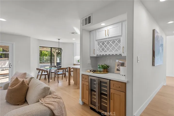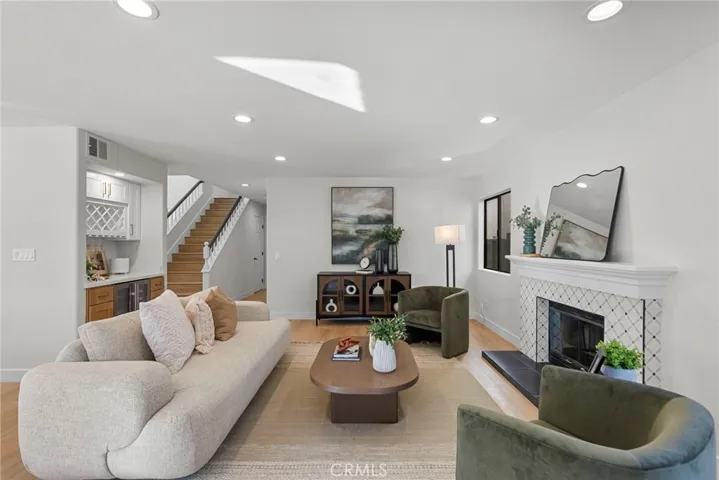 This exceptional, fully remodeled corner-lot residence offers refined living with a three-car garage and high-end finishes throughout. The interior is appointed with wide-plank hardwood laminate flooring, designer lighting, and two statement fireplaces accented by custom tile surrounds and rich wood mantels. The kitchen is a true centerpiece, featuring custom shaker cabinetry, quartz square-edge countertops, a island with undermount sink, and a full suite of brand-new stainless steel appliances, including the refrigerator. Each bathroom has been thoughtfully redesigned with luxury vanities, upgraded countertops, and modern fixtures. The spa-inspired primary suite showcases a dual-sink vanity, freestanding soaking tub, and a custom tile shower with frameless glass enclosure. Designed for both everyday living and entertaining, the private backyard retreat includes a covered patio, built-in BBQ with outdoor sink, and spa, creating a seamless indoor-outdoor lifestyle. Ideally located near premier dining, shopping, and amenities, this home offers the opportunity to fully enjoy the Stevenson Ranch lifestyle. Impeccably upgraded and move-in ready—sure to impress even the most discerning buyers.