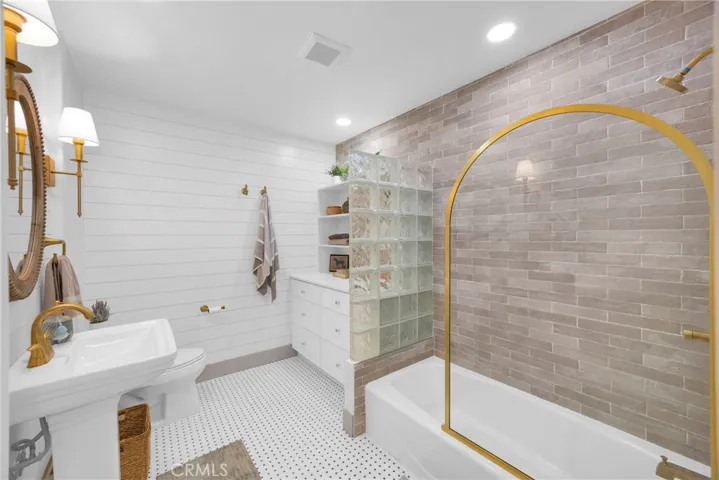 A converted space off the living room creates a desirable dual primary style layout, offering flexibility for guests, multigenerational living, or a private retreat. The original primary bedroom remains spacious and features a primary bathroom addition and walk in closet, with refreshed finishes including checkered floors and beautifully tiled details.