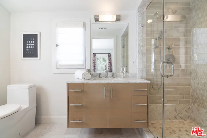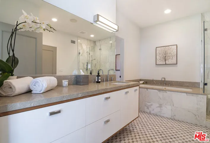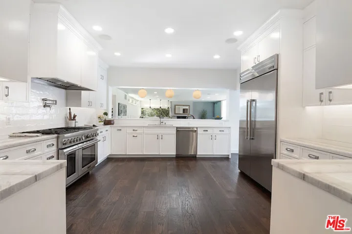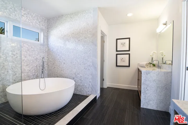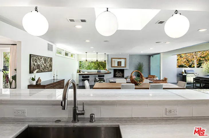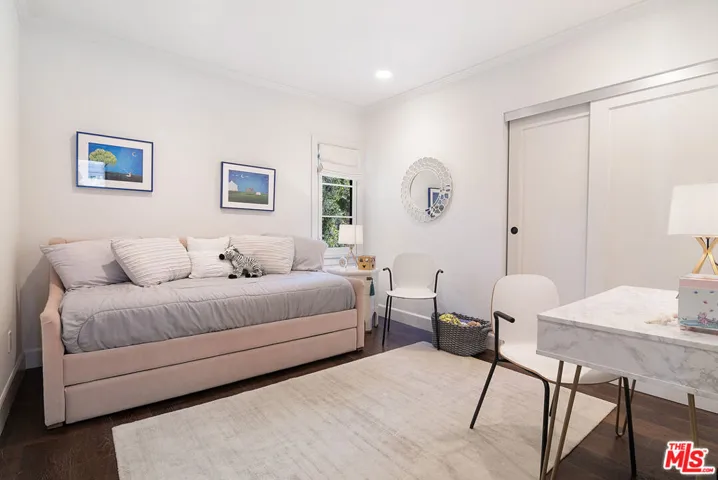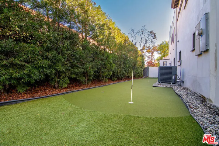 Extensively renovated and expanded Mediterranean home, gracefully set above the street on a prime corner lot in the heart of Hancock Park. Blending timeless architecture with modern comfort, this two-story residence offers sophistication, warmth, and effortless indoor-outdoor living. Expanded in the 1950s by famed architect John Lautner, the home retains its distinctive character while featuring an open design ideal for today’s lifestyle. Sliding glass walls open to a lush backyard with a expansive grassy lawn, swimmer’s pool, putting green, and private bonus office or gym. The main level features a grand two-story entry, formal living room with fireplace and French doors to a sunny patio, a gourmet kitchen with breakfast bar and casual dining area. The adjacent Lautner-designed den includes a fireplace and sunken wet bar. A main-level suite functions as a guest retreat or secondary primary bedroom, complete with a luxurious bathroom, 2 walk-in closets, and built-in Murphy bed. A powder room, laundry room, and large pantry with wine frig complete the first floor. Upstairs, the spacious primary suite enjoys its own wing with dual walk-in closets, spa-inspired bath with soaking tub and oversized shower, and a private patio overlooking the grounds. Three additional bedrooms (one en-suite) plus a hall bath complete the upper level. Enjoy the Wilshire Country Club’s annual fireworks from your own backyard. Ideally located between the Country Club and Los Angeles Tennis Club, this home also holds Hollywood history as the former residence of film director Robert Aldrich. Coveted 3rd St Elementary School