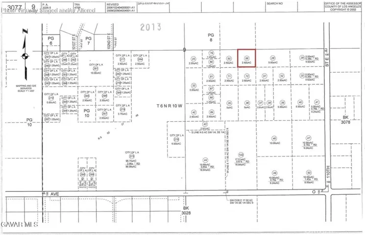 PN: 3077-009-056 Coordinates: 34.624000, -117.938972 2.56 acres for sale in LA County. This lot is located one Ave N-8 and 105th St E in Palmdale, CA. Zoning is PDA2, per county records.