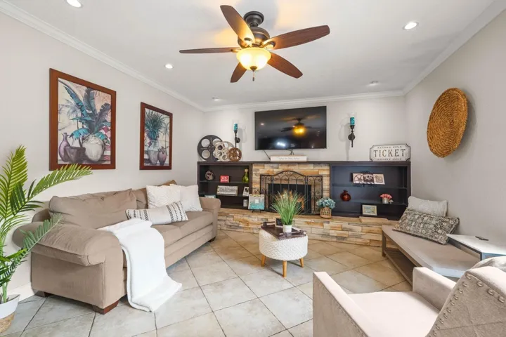 Welcome to this beautifully updated single-level 4-bedroom, 2-bath home on a corner lot in the heart of Fremont within a top-rated school district. The spacious, light-filled living room features recessed lighting, hardwood floors, and crown molding. The chef’s kitchen offers a Dacor 6-burner gas range with professional hood, built-in GE Profile microwave and oven, stainless steel appliances, stone countertops, full-wall backsplash, under-cabinet lighting, abundant cabinetry, a 4+ seating breakfast bar, and adjacent dining area. The family room has built-in shelving, a wood-burning fireplace, and sliding door access to the backyard. The primary suite includes a wall of closets and updated ensuite with tiled shower and stone vanity, while secondary bedrooms share a hall bath with jetted tub/shower. Enjoy a quiet backyard with patio, grass, and a separate space with storage shed and side access. Additional features include central A/C, ceiling fans, dual-pane windows, and shutters. Convenient to shopping, dining, top-rated schools including Oliveira Elementary, Thornton Junior High, and American High School, and easy access to Dumbarton Bridge, I-880, Tesla, Meta/Facebook, and Amazon.
