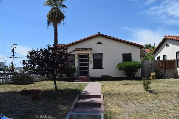 features distinctive Spanish cottage architecture with