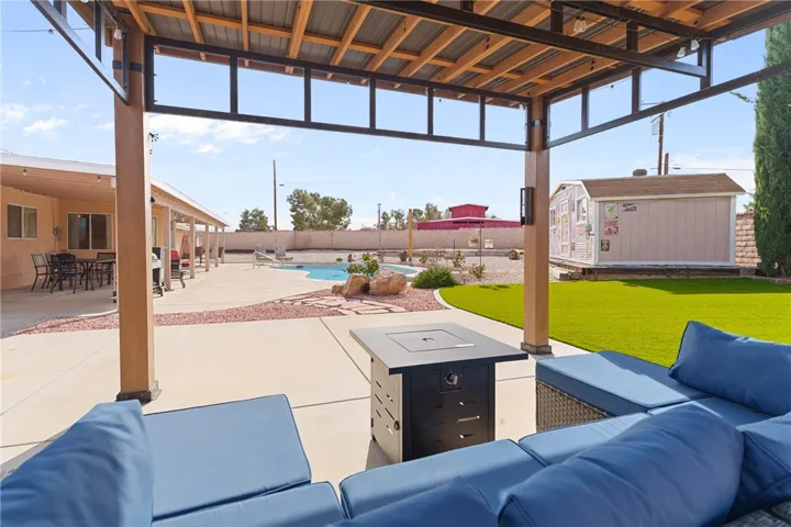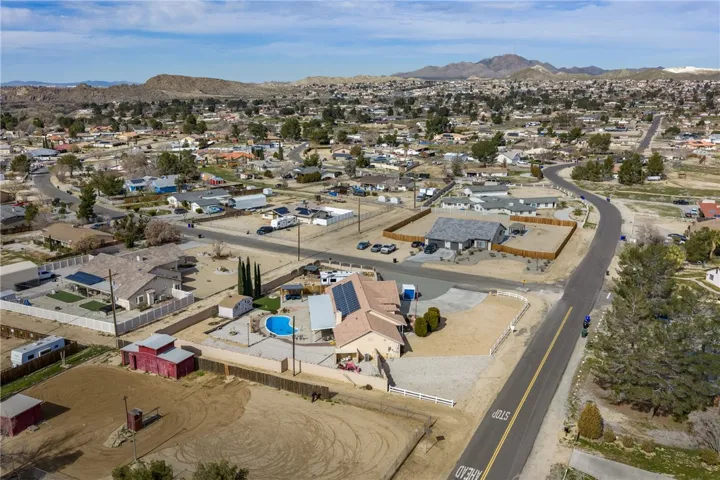The home offers a separate living room and formal dining area, along with a kitchen that opens to a cozy breakfast nook, perfect for everyday meals and entertaining. Enjoy your own private swimming pool, ideal for warm High Desert summers, complete with a new pool pump (2024) and new pool filter (2025). Additional sought-after features include solar panels, a concrete RV pad, and RV hookups on both sides of the house.