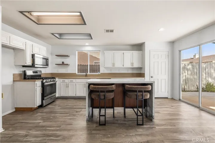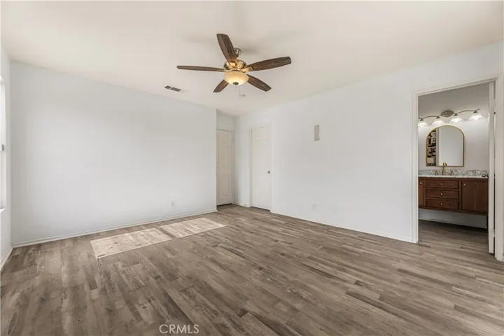 Beautiful 4-bedroom/2 bath home. Updated with two-tone interior paint and waterproof Laminate flooring throughout. The open and airy layout features a living room, formal dining area, and a separate family room complete with a fireplace. The well-appointed kitchen includes granite countertops, a center island, and abundant cabinet and workspace. The spacious primary suite offers a walk-in closet with built-ins, ceiling fan, direct backyard access, and a tastefully upgraded private bathroom with granite countertop and modern fixtures. Three additional bedrooms, a full hall bathroom, laundry room, and direct-access two-car garage complete the home. Conveniently located near schools, parks, and shopping.