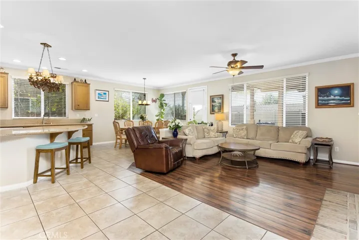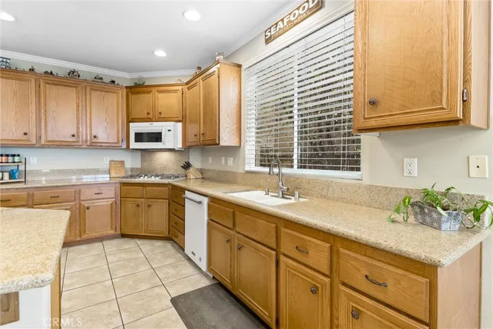 Welcome to 11924 Southwind Way located in the desirable Chapman Heights community of Yucaipa. This spacious 5 bedroom, 4 bathroom home offers 3,364 square feet of well-designed living space. The main floor features a full bedroom and bathroom, ideal for guests or multi-generational living, along with ceramic tile and wood laminate flooring throughout. The kitchen is perfect for entertaining with a large granite island, double ovens, 5 burner cooktop, built-in microwave, abundant cabinetry, and a large walk-in pantry. Additional storage includes a generous walk-in space beneath the staircase.