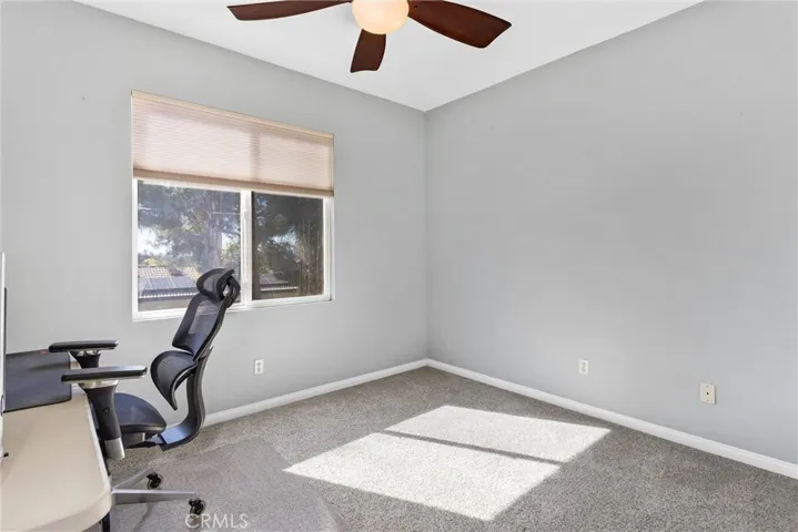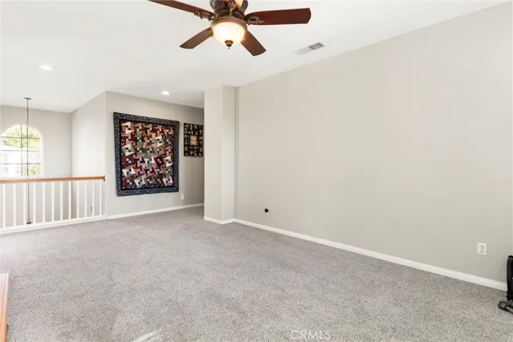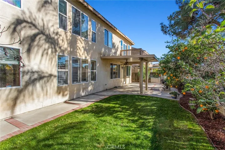 Upstairs you’ll find a large loft area and an expansive primary suite with sitting area, ensuite bathroom, large walk-in closet, and newly rebuilt private balcony/deck. The backyard is low maintenance with multiple fruit trees (1 pear, 1 pomegranate, 4 apple, 1 cherry, 2 lemon, and 1 lime) and a covered patio with ceiling fans.