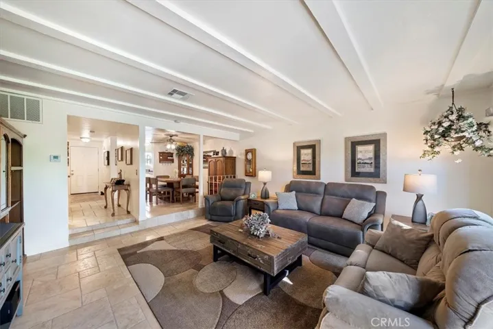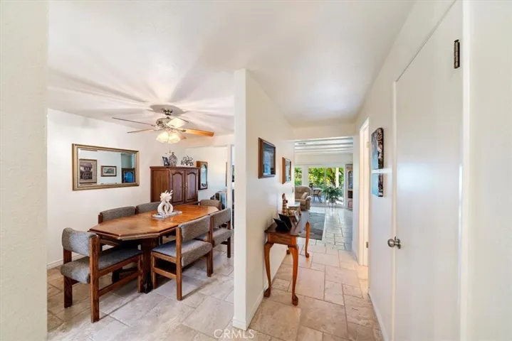 From the moment you enter, pride of ownership is evident. The open and inviting floor plan draws your eye through to serene views of the 6th fairway of Canyon Crest Golf Course. The picturesque outlook creates a peaceful setting and enhances the spacious patio, perfect for relaxing or entertaining. Las Mesas has undergone extensive community-wide improvements, including updated plumbing, recently refreshed exterior paint, and meticulously maintained landscaping that creates a welcoming, resort-like atmosphere. HOA dues conveniently include water, trash, sewer, and landscaping. Inside, numerous upgrades add comfort, efficiency, and style. The kitchen features granite countertops, stainless steel appliances, upgraded cabinetry, and travertine flooring throughout the main living areas. Additional enhancements include dual-pane windows, attic insulation, insulated shared walls for sound reduction, a newer HVAC system, an updated patio cover, and a new front entry door with security screen. Both bathrooms have been tastefully remodeled with granite countertops. The upstairs bath offers a beautifully travertine-tiled walk-in shower and flooring, plus an additional shower head above the tub with matching travertine surround. The primary bedroom includes a remodeled closet for improved storage and functionality. The property also offers two covered parking spaces and a private storage area, adding valuable convenience. Combining classic community charm, extensive modern upgrades, and a premium golf course view, this home offers comfort, style, and an exceptional lifestyle. Come see it for yourself.