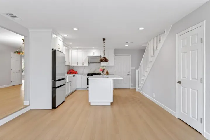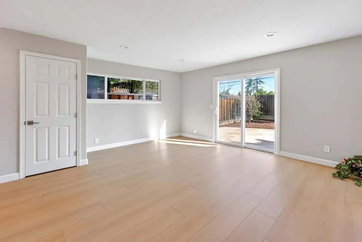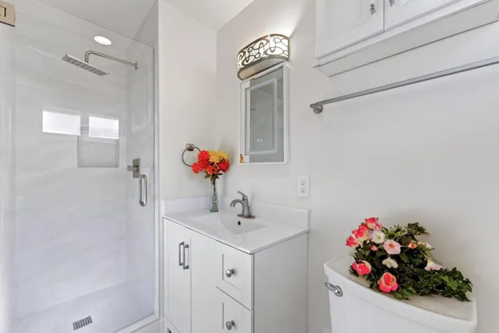 Welcome to a spacious and well-appointed home nestled in the heart of Cupertino. This residence offers 2,192 square feet of living space, featuring four bedrooms and three full bathrooms, providing ample room for comfortable living. The home features expansive living areas with gorgeous flooring and recessed lighting throughout. The gourmet kitchen is a chefs dream, showcasing crisp white cabinetry, marble-style countertops and backsplash, a central island, and a sleek modern refrigerator. The spacious living room is anchored by a cozy fireplace with a classic white mantel and is complemented by a separate family area highlighted by a stunning stained-glass chandelier. Retreat to the primary suite, which includes a luxurious modern bathroom featuring a double vanity with integrated LED mirrors and a glass-enclosed walk-in shower with premium tile work. Additional bedrooms offer generous closet space and large windows that invite abundant natural light. Outside, the private backyard is an entertainers delight, featuring a large flagstone patio surrounded by mature fruit trees and professionally designed landscaping. This meticulously updated home truly represents the best of Cupertino living.