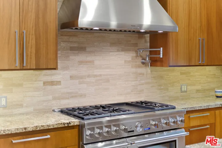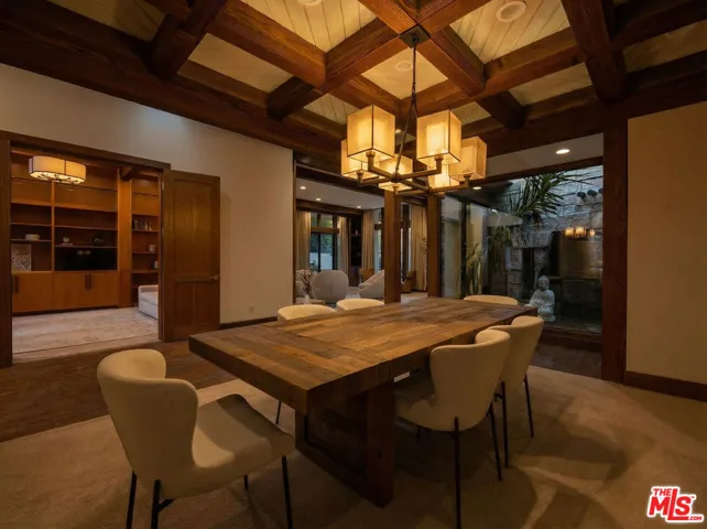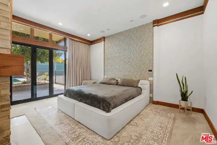 Welcome to a rare architectural masterpiece in the heart of prestigious Amestoy Estates. Rebuilt in 2014, this single-story mid-century modern estate blends timeless design with today’s most refined luxury, offering an unparalleled living experience on a private cul-de-sac. Spanning approximately 3,835 square feet, this four-bedroom, three-and-a-half-bath residence is a true showpiece of craftsmanship and intention. Exposed wood beams, clerestory windows, skylights, coffered ceilings, and exquisite inlaid wood details create a warm yet sophisticated atmosphere, while stacked stone facades and designer lighting elevate every space. At the heart of the home, the great room flows effortlessly into a stunning open-air atrium with cascading waterfalls and lush greenery. A serene, resort-style focal point that blurs the line between indoor and outdoor living. Custom built-in cabinetry, stone slab countertops, and heated floors reflect a level of quality rarely found. The gourmet kitchen is a chef’s dream, featuring premium Thermador appliances, a dual-oven gas range with custom hood, two wall ovens, built-in refrigerator and dishwasher, walk-in pantry, and elegant finishes ideal for both entertaining and everyday living. A sophisticated wine bar completes the experience. The primary suite is a private sanctuary with its own fireplace, spa-inspired bath with jetted soaking tub and steam shower, and luxurious finishes throughout. Three additional bedrooms offer walk-in closets with cedar paneling and automated lighting, providing both beauty and function. Modern comforts include solar panels, a whole-house water filtration system, dual tankless water heaters, dual HVAC systems, a dedicated utility room, and a three-car garage with epoxy flooring and custom storage cabinetry. Step outside to your private resort-style backyard, where a full tennis court easily converts for pickleball or basketball, alongside a sparkling pool perfect for both active living and elegant entertaining. This is not simply a home, it is a statement of lifestyle, design, and distinction. A one-of-a-kind opportunity in one of Encino’s most coveted neighborhoods.