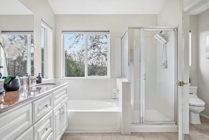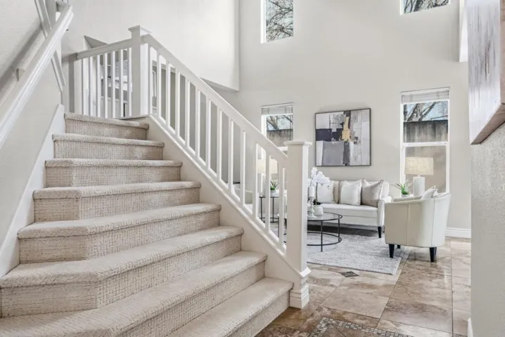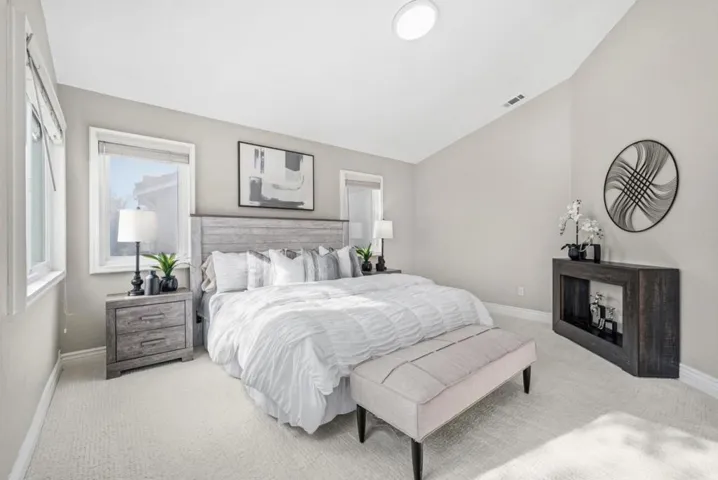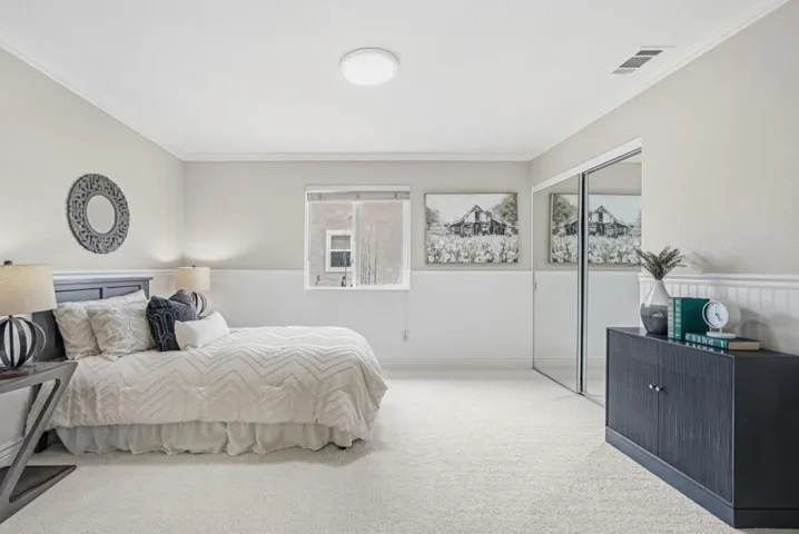 Welcome to the N.W. facing, gorgeous single family house located on a private cul-de-sac in the highly sought after Creekside community! The house has 4 bedrooms, 3 bathrooms, 2 car garage and 2589 sqft living with a bedroom and a full bathroom downstairs. Ideal floor plan offers an inviting living & formal dining, gourmet kitchen, extended family room and spacious bedrooms. Vaulted ceiling and large windows allow the light to pour in! Updated kitchen with newly painted cabinets, pantry, granite countertop, gas stove PLUS large center island. The kitchen’s island & breakfast nook provide additional space for casual dining and meal prep. Upper loft area overlooks living/dining area with cabinets. Huge master bedroom with vaulted ceiling, upgraded bathroom with dual sinks & walk in closets. Fresh interior paint and brand new carpet for a crisp, modern look inside and out! Minutes to the movie theater, the WAVE at Emerald Glen park, Whole Foods, shops, restaurants, Tassajara Creek trail, top-rated schools K-12 including brand new Emerald High school, BART and NO HOA.