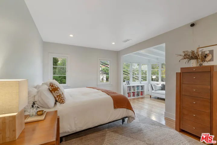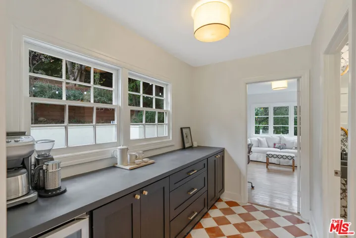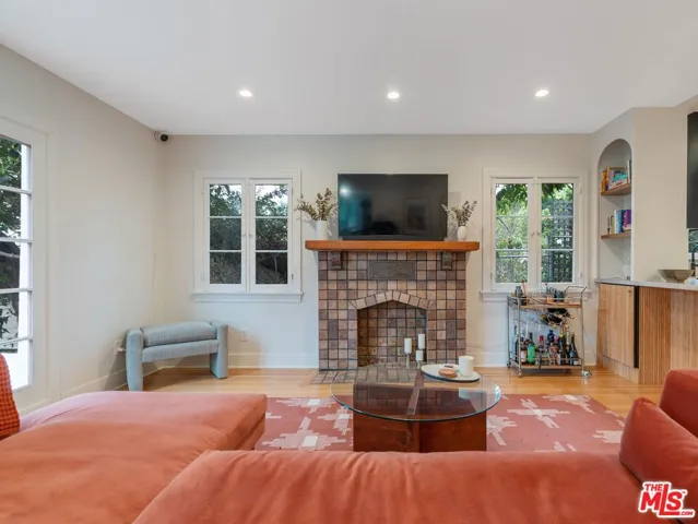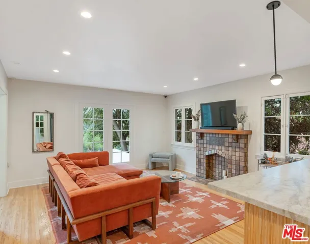 Set in the hillside of Beachwood Canyon, this thoughtfully restored Spanish Colonial Revival residence captures the appeal of its 1924 origins while embracing modern functionality. The home’s original bones immediately stand out, from beautiful old windows and Batchelder-style tiled fireplaces to graceful archways and built-in details that reflect the craftsmanship of another era. Positioned high enough to enjoy sweeping views yet still connected to the neighborhood and city below, the home offers a rare sense of calm. Sunrise views from the bedrooms unfold across the canyon, creating a peaceful morning ritual. The thoughtful layout creates a seamless flow to the interior while emphasizing light, space, and views throughout. The interior features a bright, open layout with refinished white oak flooring, restored original windows and doors, and fresh interior and exterior paint. Recessed lighting enhances the main living areas and primary suite, while curated fixtures and architectural details add warmth. The kitchen blends performance and design with Taj Mahal leathered quartzite countertops, new soft-close cabinetry, and gorgeous Energy Star appliances, including a GE Cafe range, refrigerator, dishwasher drawers, and an LG washer and dryer. A vintage Murano chandelier adds a distinctive entry moment. Major systems have been updated, including a new roof with a 20 year warranty, a two-zone energy-efficient HVAC system with smart thermostats, an energy-efficient electric water heater, updated plumbing and electrical, a new electrical panel, foundation bolting and structural reinforcement, and a newly lined sewer main with a 25 year guarantee. Outdoor living extends the home’s design with French drains, drought-tolerant landscaping with drip irrigation, exterior utility hookups for a future patio kitchen, a custom front entry gate, and a custom mahogany garage door. The terraced garden and patio create a private backyard oasis. Located in a scenic hillside setting with convenient access to Gelson’s, The Oaks Market and Cafe, dining, cultural destinations, and outdoor amenities, this residence offers classic Los Angeles architecture enhanced by thoughtful upgrades, views, and a seamless indoor-outdoor connection.