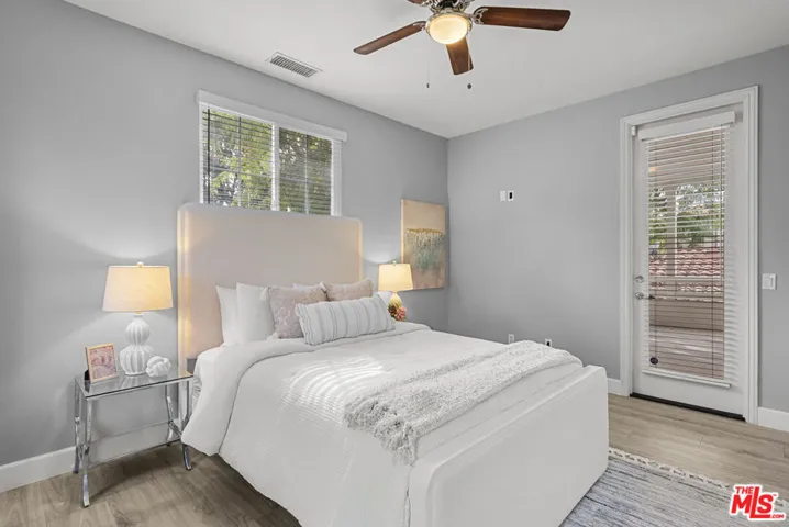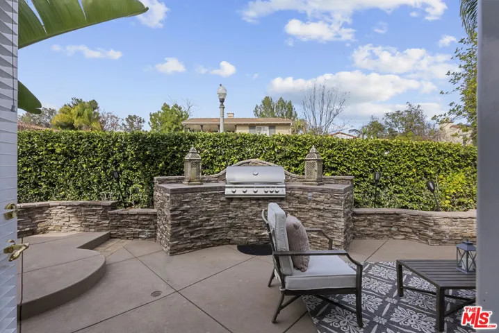 Located behind the gates of the highly desirable Valencia Woodlands, this expansive Ironwood model offers nearly 3,500 sq ft of bright, open living space with 4 bedrooms, a large first-floor bonus room (perfect as an oversized bedroom, media room, or home theater), a three-quarter bathroom on the main level, and a 3-car garage on a quiet cul-de-sac. The home showcases soaring ceilings, crown molding, luxury vinyl floors, custom two-tone paint, and two fireplaces, with an open-concept great room. The gourmet kitchen features granite countertops and island, stylish backsplash, built-in GE Monogram appliances, walk-in pantry, ample cabinetry, and breakfast bar seating. Formal living and dining rooms provide elegant entertaining spaces, while the expanded family room offers generous everyday living, complemented by a large laundry room on the main floor. Upstairs, the spacious primary suite boasts a private balcony, soaking tub, dual vanities, and separate walk-in closets. Two additional front bedrooms share a large balcony and each include walk-in closets, and the fourth bedroom is ideal for a home office. Enjoy the low-maintenance, custom landscaped yard with built-in BBQ, stone accents, fountains, and gated courtyard entry, plus owned solar for major energy savings, a leaded glass entry door, and three total balconies. Community amenities include 24-hour guard-gated entry, pool, spa, outdoor fireplace area, tennis courts, basketball/sport court, walking paths with dog stations, and open green spaces, all just minutes from shopping, dining, top-rated schools, golf, Westfield Valencia Town Center, College of the Canyons, and easy freeway access.
