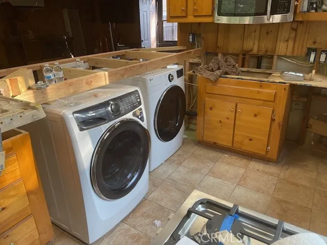 added in 2024 has a U-shaped kitchen counter, full size refrigerator, full size stack washer and dryer.