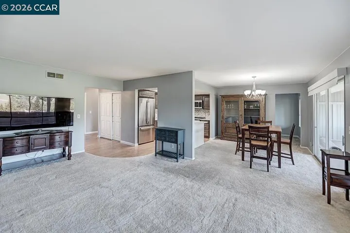 Enjoy one of Rossmoor’s most spectacular locations, set in a highly desirable entry that features its own private park—perfect for neighborhood socials and gatherings. Tucked at the end of a quiet court and bordering a peaceful canyon of trees, this special setting offers lovely landscaping and a true sense of retreat. The expansive enclosed deck captures sweeping views of rolling hills and mature trees, ideal for relaxing or entertaining. Inside, the extra-large primary suite includes a generous walk-in closet and an ensuite bath. A comfortable second bedroom is conveniently located near the hall bath with in-unit washer and dryer. A versatile bonus room off the dining area works beautifully as a home office or creative space. The updated kitchen shines with stainless steel appliances, solid-surface counters, wood cabinetry, a stunning backsplash, and a skylight. Additional updates include textured ceilings and soothing designer paint colors. Carport #81 is included. Located in the exclusive Rossmoor 55+ community, residents enjoy resort-style living with golf, pools, clubhouses, pickleball, bocce, hiking trails, dining, a movie theater, hobby rooms, art and ceramics studios, card games, dances, concerts, and over 200 social clubs. It’s your time to enjoy yourself!