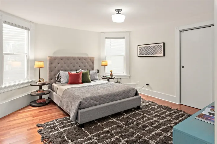 Gracious and spacious 4-bedroom, 2.5 -bath Victorian exemplifies a perfect combination of charming architectural integrity with modern sophistication, Wood floors have been updated, kitchen has the original warm fir floors with french doors to deck and garden. Large primary suite accesses garden. Primary suite bath has 2 vanities for side-by-side convenience. One of the bedrooms is staged as an office. Many smart upgrades over the last few years, chef’s kitchen, top of the line appliances, updated bathrooms, smart washer/dryer, Siemens EV charging station, house and yard fully fenced, upgraded sunny deck off of kitchen for enjoying sunshine with your morning coffee and additional seating in the back yard with a gazebo over a brick patio and an outdoor structure with seating for those afternoon or evening barbeques. Front of house upgrades include a sliding gate, hardscape, and off-street parking space. Neighborhood amenities include a farmers market, West Oakland BART, and freeway access for commuters.