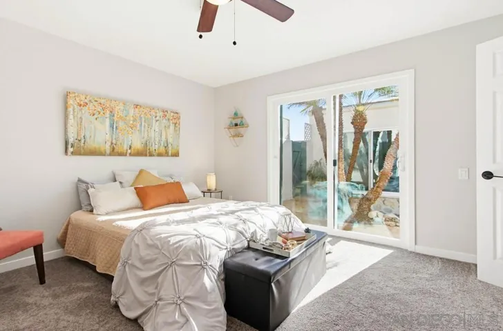 Every day feels like a vacation the moment you step inside this home and into your own private retreat. Quietly tucked within the community, it offers a rare blend of privacy, natural light, and resort-style living rarely found. Completely remodeled and thoughtfully reimagined, the residence lives more like a single-family home than a condo, with *no shared walls* and an exceptional sense of peace and seclusion. Expansive windows fill the home with natural light, creating an airy, calming atmosphere that feels both spacious and grounded. Inside, every detail has been elevated with intention. A reimagined open-concept layout flows seamlessly through a beautiful modern kitchen and into inviting living spaces ideal for both quiet mornings and effortless entertaining. Designer finishes shine throughout, including stunning remodeled bathrooms with elegant Carrera countertops, shiplap accent walls, and durable waterproof luxury vinyl plank flooring throughout that balances style with everyday comfort. What truly sets this home apart is its extraordinary indoor-outdoor living. All 3 bedrooms feature sliding doors that open directly to outdoor spaces, blurring the line between inside and out. Enjoy two distinct patios: a lush, tropical koi pond surrounded by palm trees that creates a soothing, zen-like escape, and a second, intimate enclosed patio that lives like a private atrium. Surrounded by manicured lawns and landscaping, the home feels peaceful, private, and beautifully tucked away. Owned solar helps keep energy costs low, while exterior maintenance is included for effortl