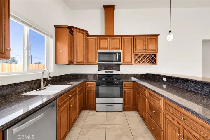 Welcome home—if you’re looking for a spacious, move-in-ready home in a great neighborhood, this 4-bedroom, 2-bath property in the Smoke Tree area of 29 Palms is a must-see. Built in 2013 and situated on just over 1/3 of an acre, this well-maintained home offers 1,827 sq ft of comfortable living space and has been recently refreshed with brand-new interior paint, new window blinds, new laminate flooring in the guest bedrooms, and a brand-new garage door, giving it a clean, updated feel throughout. The generously sized living room features a gas fireplace that adds warmth and ambiance, along with ceiling fans and multiple double-pane windows that fill the space with natural light. The open dining area flows seamlessly into the chef-inspired kitchen, complete with granite countertops, stainless steel appliances, ample cabinetry, recessed lighting, bar seating, and a sliding glass door that leads to the fully fenced backyard. Step outside to enjoy the covered concrete patio, perfect for entertaining, relaxing, or family gatherings. The primary bedroom is bright and well-sized, featuring an en-suite bathroom with tile flooring and a shower/tub combination. The guest bedrooms are cheerful and inviting, offering generous closet space and updated flooring. Additional highlights include a concrete driveway, an attached 2-car garage, a newer roof installed in 2018, and leased solar panels to help keep energy costs low year-round. Located on a paved road and directly across from Knotts Sky Park, this home is ideally positioned for convenience and everyday enjoyment. You’re just minutes from downtown 29 Palms, where you’ll find popular local restaurants, coffee shops, and unique boutiques. And for outdoor lovers, Joshua Tree National Park is a short drive away, offering world-class hiking, rock climbing, and iconic desert landscapes. With beautiful desert sunrises, a welcoming neighborhood feel, and easy access to town, this home offers space, comfort, and lifestyle. Schedule your showing today—this one won’t last.