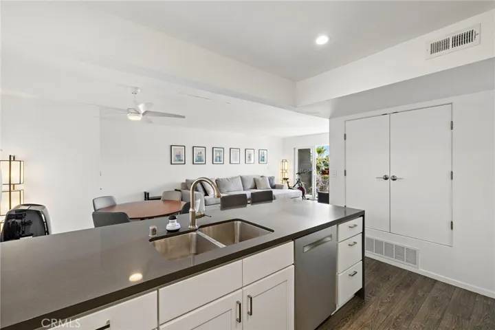 Spectacular upper-level North Laguna residence with sweeping ocean views. Beautifully remodeled top-floor apartment located just steps from Crescent Bay, Diver’s Cove, and some of Laguna Beach’s most desirable beaches. Enjoy ocean views from the expansive redwood deck spanning the full length of the living room. The gourmet kitchen has been completely remodeled and features stainless steel appliances, including a Bosch dishwasher, breakfast bar, and open-concept design flowing into a spacious living area. Contemporary wood flooring, recessed lighting, newer double-paned windows, and modern interior doors with frosted glass accents throughout. The primary bedroom offers stunning ocean views and a remodeled en-suite bath. Both bathrooms have been updated with new tile, frameless glass shower enclosures, and floating vanities. Spacious secondary bedroom with generous closet space. In-unit private laundry with stackable washer and dryer included. Property includes one shared garage space in a two-car garage plus one driveway parking space. Storage shelving available in garage. Walk to North Laguna’s beaches, coves, restaurants, galleries, and shops. Minutes to downtown Laguna Beach and Main Beach. Exceptional opportunity for peaceful coastal living with breathtaking ocean views.