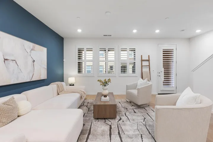Modern townhouse in the desirable Bishops Ridge community. Built in 2019, this 4-bedroom, 3.5-bath home offers approx. 1,773 sq ft of well-designed living space. The first-floor bedroom with en-suite bath is ideal for guests, an office, or multi-generational living. The gourmet kitchen features quartz countertops, a center island, stainless steel appliances, and a gas range, opening to a bright living and dining area with high ceilings, abundant natural light, and a private balcony. Upstairs includes a spacious primary suite with a walk-in closet, dual vanity, and walk-in shower, plus two additional bedrooms and a full bath. Laundry is conveniently located on the main living level. Smart home features include pre-wired EV charging, a tankless water heater, and central heat/AC. Two-car garage and guest parking. Close to Lake Chabot, trails, I-580, BART, shopping, dining, and Yu Ming Charter School just one block away.