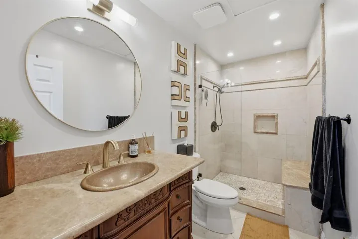 Views, views, views! Welcome to this serene, zen-inspired split-level twin home where comfort, flexibility, and breathtaking scenery come together beautifully. Designed for both relaxing and entertaining, this thoughtfully reconfigured 3-bedroom + loft, 3-bath residence offers a truly unique and versatile layout. One portion of the home has been transformed into a Private Living Suite. This 1-bedroom, 1-bath suite with its own kitchen, living room, and enclosed backyard patio is ideal for multi-generational living, guests, or potential rental opportunities. This space adds exceptional flexibility and value. The main living spaces are filled with natural light and open seamlessly to the outdoors, inviting you to slow down and savor the setting. From inside the home and the backyard, enjoy stunning 180-degree views of the Omni La Costa Resort Golf Course, lagoon, and the ocean beyond, a rare and peaceful backdrop that elevates everyday living. Updated kitchens and bathrooms, along with thoughtful upgrades throughout, blend modern comfort with a calm, welcoming ambiance. Recent major improvements offer added peace of mind, including a new roof (2025), full house repipe (2023), AC added (2020), and a new water heater (2026). No HOA/Mello Roos! Conveniently located near the freeway, beaches, shopping, and dining, this is more than a home; it’s a retreat. A place to unwind, gather, and experience Carlsbad living at its finest.