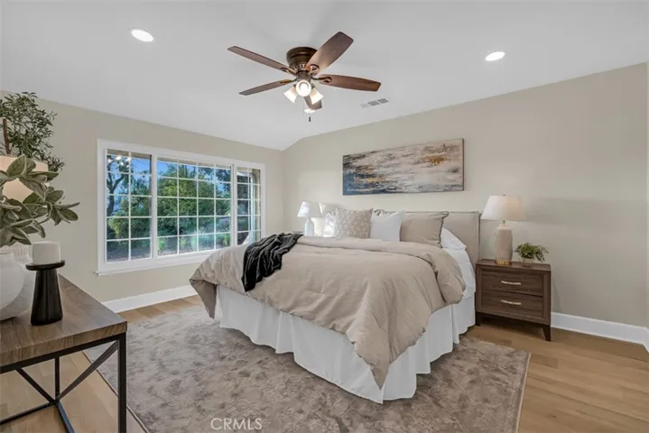Discover your ideal retreat in the exclusive Jurupa Hills, where this unique 4-bedroom, 2-bath estate sits on just under half an acre in a private cul-de-sac. Commanding beautiful city and mountain views, this home features a fully paid-off 40-panel solar system and a 3-car tandem garage with a rare drive-through garage door with access to the backyard. Tons of storage space with built-in cabinets in the garage. Inside, new waterproof luxury vinyl plank flooring, fresh designer paint, classic wainscoting, ceiling fans, and vaulted ceilings frame the living space, which centers on a cozy fireplace. The gourmet kitchen dazzles with granite countertops, a built-in hood, a Thermador Professional 6-burner range, and a “Super Pantry” with room for an extra fridge and office space. Entertain under the impressive dining room chandelier or retreat to the primary suite with custom closet organizers and a spa-like bathroom featuring dual sinks; both bathrooms have been tastefully updated with a classic luxury look. ADT alarm system w/ touch screen. Outside, the horse-zoned grounds boast room for RV parking, newer vinyl fencing, and two large sheds, including a newer Tuff Shed. Relax by the pool and spa with new perimeter tile, host at the BBQ island and fire bar table, or gather around the side yard fire pit. The backyard also features citrus trees, passion fruit vines, ample garden planters, and a large patio cover with recessed lighting and a new rolled composition roof. With beautiful front slope landscaping and proximity to parks and trails, this view home truly checks every box.
