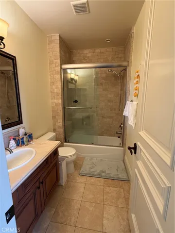 The home features five generously sized bedrooms and five and a half baths, including a private main-level bedroom suite with a walk-in closet—ideal for guests or multigenerational living. Stone tile flooring graces the main living areas, enhancing the open floor plan and creating a seamless flow throughout the home.