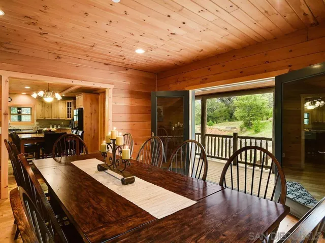 Seller Improvement at $1,350,000.00. Welcome to Mountain Majesty, a custom log home set high in a peaceful gated community in the scenic hills of Julian. Elevated above its natural surroundings and framed by mature trees, this home makes a striking first impression with its wrap-around deck, stone pillars, and warm evening glow. Built in 2007 and thoughtfully completed by the current owners, the residence blends craftsmanship and mountain character with wood and tile flooring, granite surfaces, and quality finishes throughout. A generous wrap-around deck invites outdoor living and entertaining, while custom stone veneer accents the entry, pillars, stairwell, BBQ area, and patio. Inside are 3 bedrooms, 3.5 baths, a loft, and a 408 sq ft finished bonus room suitable for guests, media, or hobbies. Vaulted wood ceilings and rich paneling create warmth and architectural depth. The open kitchen features granite counters, custom cabinetry, and a mosaic tile backsplash, flowing easily into the dining and living areas. The primary suite enjoys tranquil forest views and a spacious bath with a travertine shower and clawfoot tub. A private spa and sauna room with large windows offers a peaceful retreat. Additional amenities include a 2-car garage, a 14′ x 49′ workshop, and generous storage. Practical upgrades such as a gated garden, Generac generator, tankless water heater, mini-split HVAC, water softener, pump house, and 10,000-gallon tank support comfort and efficiency. Mountain Majesty is a rare Julian offering that combines privacy, craftsmanship, and enduring mountain appeal.
