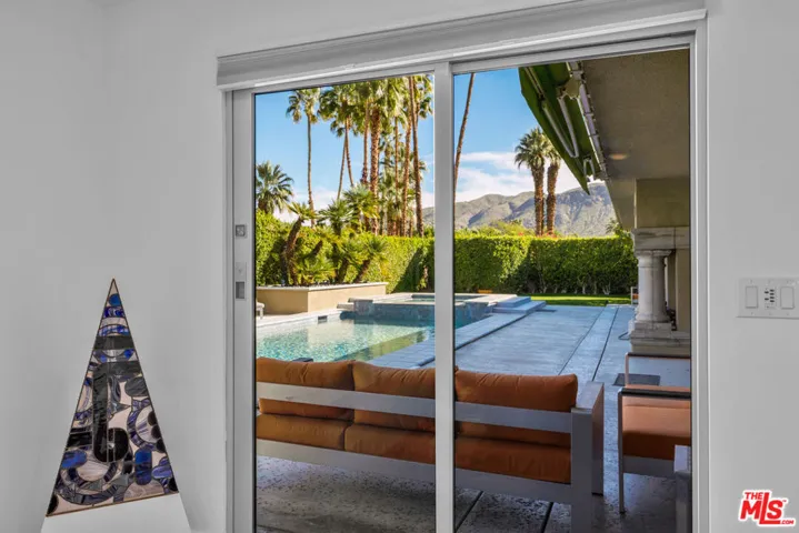 An authentic Mid-Century home invites you to embrace the lifestyle that only Palm Springs can offer. Set in the famous Indian Canyons neighborhood, this remodeled 4-bedroom, 3-bathroom residence sits on an oversized lot where you own the land and pay no HOA fees. Framed by breathtaking, unobstructed views of the San Jacinto Mountains, the backdrop feels straight out of a postcard. Designed for effortless desert living, the home blends iconic Mid-Century architecture with tasteful modern updates. The open-concept living and kitchen area is ideal for entertaining, where seamless indoor-outdoor living takes center stage. The newly remodeled chef’s kitchen, featuring custom teak cabinetry, quartz countertops, stainless steel appliances, and a central island are perfect for morning coffee or sunset cocktails. Sleek flooring flows throughout, creating a cohesive and sophisticated aesthetic. Now with two primary suites that offers bright, inviting retreats, each with walk-in closets and direct access to the private yard. The vibrant renovated custom bathrooms make a statement with accent tiles, quartz vanities and backlit mirrors. Energy-efficient upgrades include paid solar panels, Fleetwood sliders, dual-pane windows, custom shades throughout, a Trane A/C , tankless water heater, and a new separate A/C system in the primary bedroom keeping comfort high and utility costs low. Step outside and let the sunshine bathe you in warmth as the sparkling pool and spa beckon. The private, serene yard is a true oasis, complete with fruit trees, multiple lounging areas, and the perfect setting for evening stargazing. Located in desirable South Palm Springs, away from the windy zone and in an active area, close distance to shops, dining, and hiking trails. This is the home you have been dreaming of.