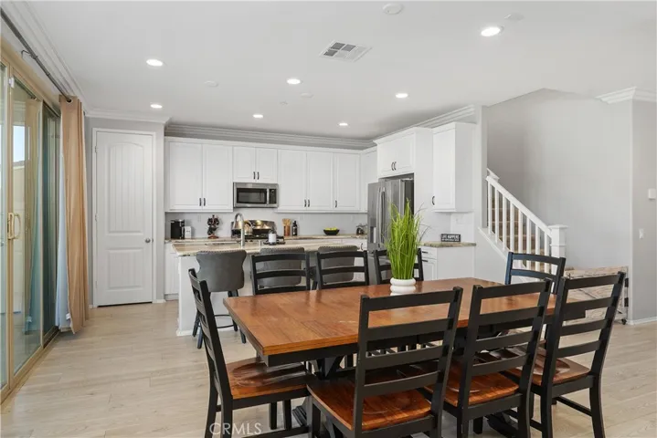 This contemporary Mediterranean home blends classic Spanish Revival charm with clean modern lines, offering timeless curb appeal in the highly desirable McSweeny Farms community. Residents enjoy resort-style amenities including an expansive 18,000-sq-ft clubhouse with pool and spa, fitness center, basketball court, amphitheater, and scenic walking trails. Inside, the home is impeccably maintained and filled with natural light, featuring light LVP flooring, neutral carpeting, crown molding, and fresh, modern finishes throughout. The open-concept kitchen is the heart of the home, showcasing white soft-close cabinetry, striking marble-style quartz countertops, and seamless flow into the family room with a cozy gas fireplace. A versatile downstairs bonus room is ideal for a home office, studio, or flex space. Upstairs, a spacious loft complements three generously sized bedrooms, including a peaceful primary suite with a well-appointed en-suite bathroom. Step outside to enjoy a low-maintenance backyard with artificial turf, a covered patio, and breathtaking views of the Polly Butte mountain range. Additional highlights include a paid-off solar system with 15 panels, Tesla EV charging station, tankless water heater, and included refrigerator—offering comfort, efficiency, and modern Southern California living at its finest. Nearby Diamond Valley Lake and the Western Science Center add to the area’s recreational appeal.
