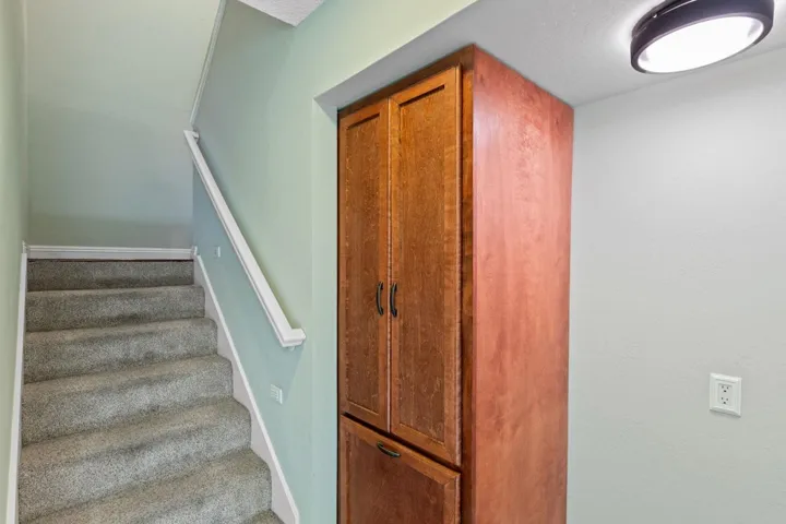 Well maintained townhome, move-in ready. Upon entering, you’re welcomed by laminate flooring that leads either downstairs or into the open kitchen and living room combination, complete with an upgraded half bath. The fully equipped kitchen shines with stainless steel appliances, upgraded cabinetry, solid granite countertops, and a modern faucet and sink. The inviting living room centers around a wood-burning fireplace with a custom mahogany mantle, vaulted ceilings, and an open flow into the dining area. From here, step out onto the private balcony and enjoy stunning Mt. Diablo views. Downstairs offers a spacious hallway with a charming alcove, two comfortable bedrooms, a full hall bath, and a relaxing primary suite. The primary bedroom features its own private balcony, a closet and a full en-suite bath. Conveniently located near shopping, dining, and commuter routes, the community also offers a pool for residents to enjoy. This home blends comfort, style, and location.