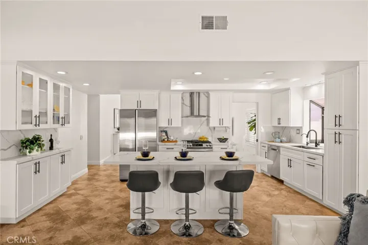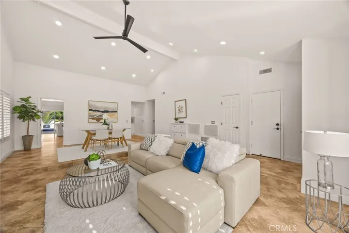 LIST OF UPGRADES IS UPLOADED AS A SUPPLEMENT. Welcome to 9 Sheridan, a meticulously upgraded single-level residence located on a quiet cul-de-sac in one of Irvine’s most established and desirable neighborhoods. Vaulted ceilings, recessed lighting, plantation shutters, newer windows, and a bright, open layout create a welcoming atmosphere filled with natural light. The recently remodeled kitchen features white shaker cabinetry with soft-close drawers, quartz countertops, a large center island with built-in power and charging ports, pull-out pantry shelves/drawers, a Futuro range hood, Samsung oven, reverse osmosis drinking water system, and upgraded sink and fixtures. The kitchen flows seamlessly into the family room featuring a stunning contemporary electric fireplace with a floor-to-ceiling porcelain tile surround. A larger window and expansive sliding glass doors fill the space with natural light. All bedrooms are generously sized and include ceiling fans and updated lighting. Two bedrooms feature custom built-in cabinetry/shelves with desk, ideal for a home office. The primary suite offers 3-panel mirrored wardrobe doors with ample closet space. Both bathrooms recently remodeled & showcase custom-painted vanities, stone surfaces, upgraded fixtures, modern medicine cabinets, exhaust fans, and beautifully tiled shower and bath enclosures. The primary bathroom features a walk-in shower with bench seating and custom niches. The private backyard is a true retreat, designed for year-round enjoyment. The pool and spa were fully remodeled with new tile, travertine coping, Mini Pebble interior finish, LED color-changing lights, safety drain upgrades, and new mastic and browncoat work. The pool deck features a new CenturyStone flagstone overlay, creating a timeless outdoor entertaining space framed by mature hedges for exceptional privacy. The finished garage features epoxy flooring, extensive custom cabinetry, shelving, a utility sink, shaker cabinetry and timber countertops. Major system upgrades include a 4-ton Lennox HVAC system, Lennox Elite gas furnace, Navien tankless water heater, insulated garage ceiling, and upgraded attic access. Smart-home features include a Nest thermostat and Google Nest doorbell, while curb appeal is enhanced with shiplap detailing, a bay window, updated landscaping, and porcelain-tiled entry steps. Located near award-winning Irvine schools, parks, shopping, dining, and convenient freeway access. NO HOA & NO MELLO ROOS!