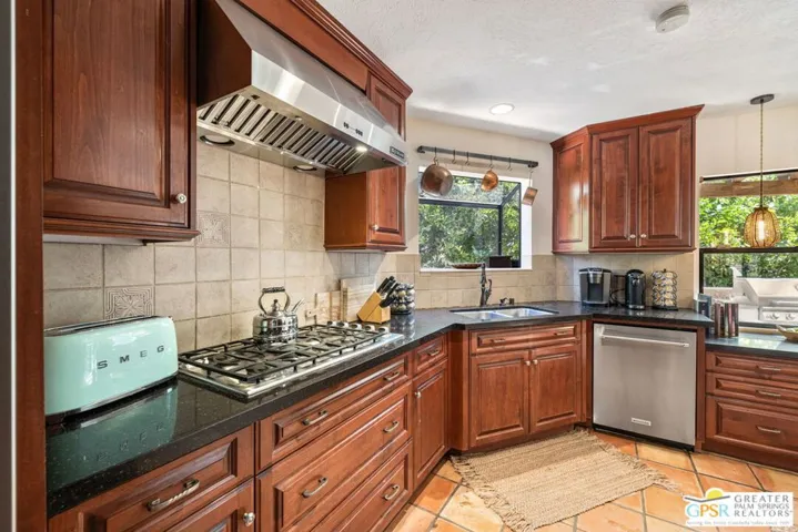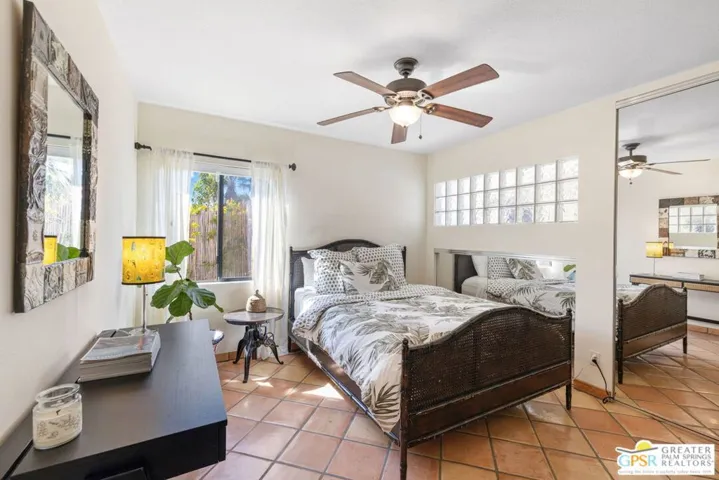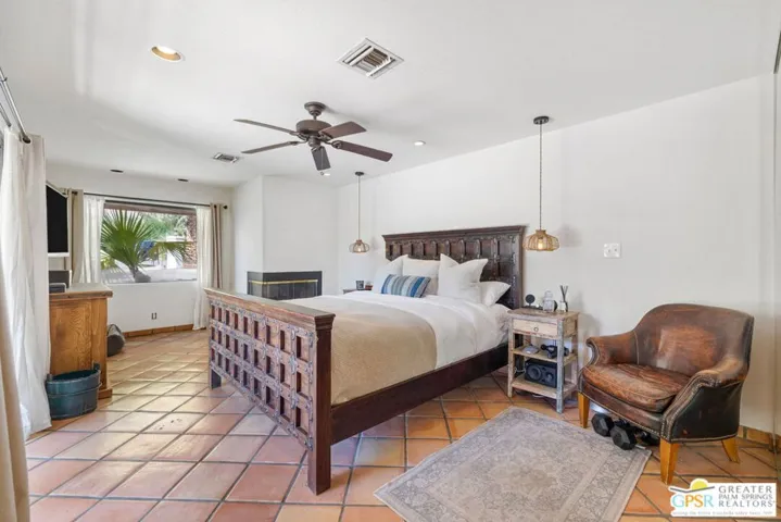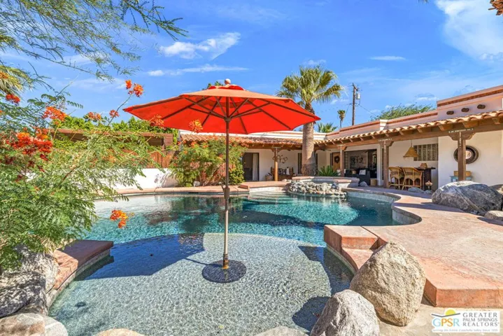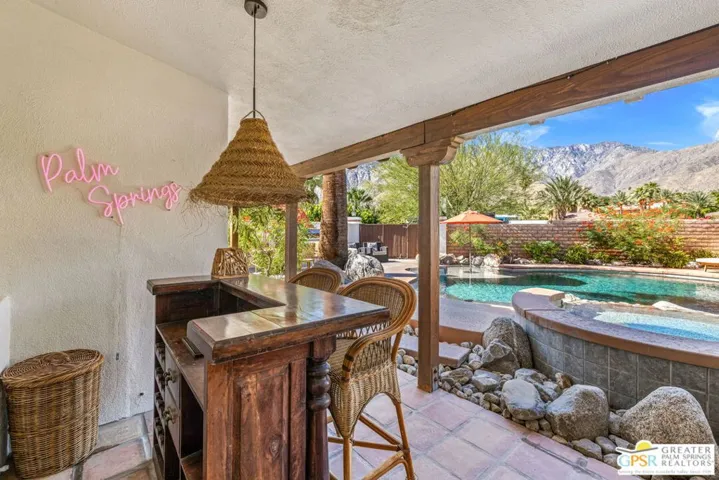 WOW! Mount San Jacinto feels close enough to touch at this ultra private walled and gated 1940s era hacienda offering four bedrooms on Fee Land with owned SOLAR and currently eligible for the City’s Short Term Rental permit. Covered porches frame dramatic mountain views while the resort style grounds feature a pool, spa, fountains and a Baja style sunning shelf. The living room features an amazing picture window taking in pool and mountain views, while interiors flow beautifully between living spaces with a wet bar, fireplace and a spacious light filled kitchen with a breakfast area designed for effortless indoor outdoor living. Just steps away, an outdoor kitchen with barbecue, pergola and tiled terrace creates an exceptional setting for entertaining. Bedrooms are thoughtfully separated across distinct wings, including an ensuite primary retreat with fireplace, sitting area, direct pool access and a beautifully tiled bath. Guest bedrooms two three and four occupy their own wing, with one currently configured as an office featuring handsome built in bookcases. A motorized gate opens to covered carport parking, while a second gated driveway leads to a two car garage with an attached bonus room ideal for a home gym or office. Low maintenance desert landscaping includes mature citrus trees, and the proximity to Uptown Palm Springs is exceptional, with Chino Canyon, Little Tuscany and Vista Las Palmas among the most sought after neighborhoods for secondary and vacation home buyers. Falling in love with these views comes easy.