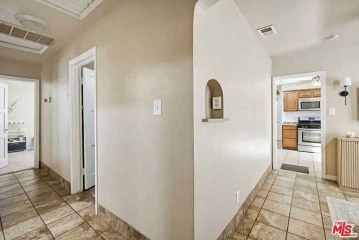 This remodeled 3-bedroom, 2-bath home sits on a desirable corner lot and spans approximately .39 acres, offering endless possibilities. To the left of the home (when facing the property) is a vacant lot included in the sale, zoned for both commercial and residential usea rare opportunity.The bright living room features hardwood floors, large windows, a ceiling fan, and a charming brick fireplace. A formal dining room offers ceramic tile flooring and a ceiling fan, perfect for gatherings. The updated interior continues throughout the home with spacious bedrooms and ample storage.The third bedroom includes two separate entrances, making it ideal for a home office, den, or potential business use. The bathroom features tile floors, tile countertops, and a separate shower and tub.Outside, enjoy a huge covered back patio and mature fruit and nut trees, including orange, tangerine, and walnut trees. This is truly a unique property with incredible land value and versatility.