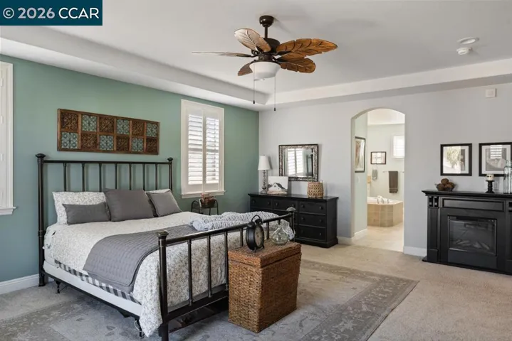 Located in the highly desirable gated community of The Lakes in Discovery Bay. This beautifully maintained home offers the perfect blend of comfort, style, and low-maintenance living. Step inside to find a bright, open floor plan featuring spacious living and dining areas ideal for both everyday living and entertaining. The well-appointed kitchen includes ample cabinetry and pantry, generous stone countertop space, and a seamless flow into the main living area featuring a tiled fireplace with decorative mantel. Large windows invite in abundant natural light, creating a warm and inviting atmosphere throughout. The primary suite provides a peaceful retreat with a private en-suite bathroom with bathtub, shower, and generous closet space. Additional bedrooms offer flexibility for family, guests, or a home office plus a bonus room. Enjoy outdoor living in your private backyard including a covered patio with ceiling fan, lush lawn, and trees of various sizes —perfect for relaxing, gardening, or hosting gatherings. Residents of The Lakes enjoy gated security, beautifully maintained common areas, and community amenities that enhance the resort-style lifestyle. Conveniently located near shopping, dining, schools, and Delta waterways, this home offers both tranquility and accessibility.