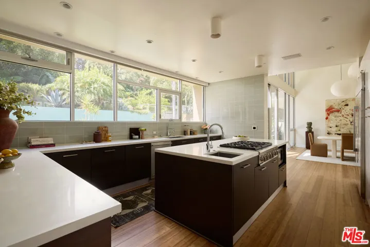 Tucked behind private gates in the exclusive Fryman Estates, 3369 Fryman Place is a rare modern contemporary estate that seamlessly blends architectural design with everyday livable luxury. Spanning over 6,000 square feet, this 5-bedroom, 6-bath residence showcases clean lines, curated materials, and high-end finishes throughout. The expansive layout flows effortlessly across sun-drenched living spaces, where soaring ceilings, sleek fixtures, and designer details create a refined yet welcoming ambiance. Designed with both comfort and entertaining in mind, the main level features spacious gathering areas and seamless indoor-outdoor integration. The primary suite is a tranquil sanctuary, complete with a spa-inspired bath, oversized walk-in closet, and serene views of the surrounding greenery. Each additional bedroom includes its own en-suite bath and generous proportions, offering both privacy and luxury for family and guests. Step outside to a private resort-style oasis. A large pool, full bar, guest house, and multiple lounge areas invite year-round entertaining and relaxation. The tiered garden is framed by mature trees and curated landscaping, delivering both privacy and natural beauty. Set in one of Los Angeles’ most desirable neighborhoods, this exceptional property is a rare offering where timeless design meets contemporary elegance.