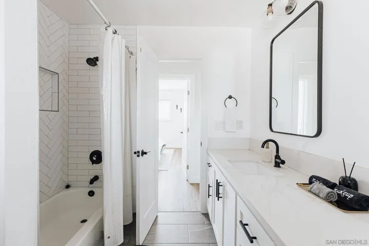 Welcome to your modern coastal retreat in the heart of Ocean Beach! This fully remodeled 3-bedroom, 2-bathroom home has been thoughtfully designed with high-end furniture, designer finishes, and a seamless open floor plan that invites effortless indoor-outdoor living. Sliding glass doors connect the living spaces to both front and back decks, creating the perfect flow for entertaining or relaxing. The gourmet kitchen features an oversized island, stainless steel appliances, and ample storage, opening to the spacious living room with a pool table, large-screen TV, and plenty of seating. The primary suite offers a spa-like bathroom with a dual shower, while two additional bedrooms provide flexible accommodations for family and guests. Outside, a true backyard oasis awaits, complete with a covered jacuzzi, propane BBQ, outdoor dining and lounge areas, turf game zone with bocce, corn hole, and ring toss, as well as string lighting for magical evenings. Additional highlights include central A/C and heat, EV charger, 2-car garage plus driveway parking, laundry, fast WiFi, and kid- and dog-friendly amenities. Ideally located just minutes from the beach, Ocean Beach pier, dining, shopping, and surf, this home offers the perfect blend of modern comfort and coastal charm. Welcome to your modern coastal retreat in the heart of Ocean Beach! This fully remodeled 3-bedroom, 2-bathroom home has been thoughtfully designed with high-end furniture, designer finishes, and a seamless open floor plan that invites effortless indoor-outdoor living. Sliding glass doors connect the living spaces to both front and back decks, creating the perfect flow for entertaining or relaxing. The gourmet kitchen features an oversized island, stainless steel appliances, and ample storage, opening to the spacious living room with a pool table, large-screen TV, and plenty of seating. The primary suite offers a spa-like bathroom with a dual shower, while two additional bedrooms provide flexible accommodations for family and guests. Outside, a true backyard oasis awaits, complete with a covered jacuzzi, propane BBQ, outdoor dining and lounge areas, turf game zone with bocce, corn hole, and ring toss, as well as string lighting for magical evenings. Additional highlights include central A/C and heat, EV charger, 2-car garage plus driveway parking, laundry, fast WiFi, and kid- and dog-friendly amenities. Ideally located just minutes from the beach, Ocean Beach pier, dining, shopping, and surf, this home offers the perfect blend of modern comfort and coastal charm.