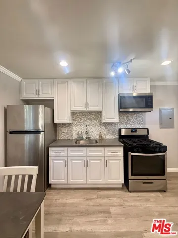 Completely remodeled, detached guest home/studio set in a secure, lushly landscaped setting with a private walkway and private yard. Ideally located a short distance to Trader Joe’s, shops, and restaurants, and just one mile north of Ventura Blvd, offering easy access to the Westside and nearby studios. This upgraded, detached guest studio features a bright, fully furnished and functional living space with stainless steel appliances, granite countertops, and in-unit stackable laundry. A private front gate opens to a fully fenced backyard, offering ample space for a pet and outdoor relaxation. The unit comes fully furnished with a queen bed, dining table with four chairs, sectional sofa with pull-out bed, and all appliances included, including laundry and outdoor furniture. Tenant is responsible for utilities; the owner covers water. Ample street parking available. Note: the main residence is located at the front of the property on the same lot. Please click and view video tour.
