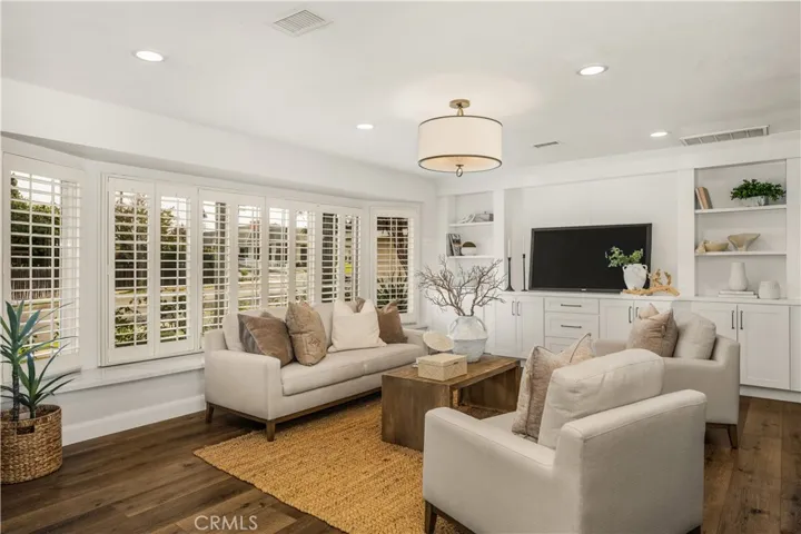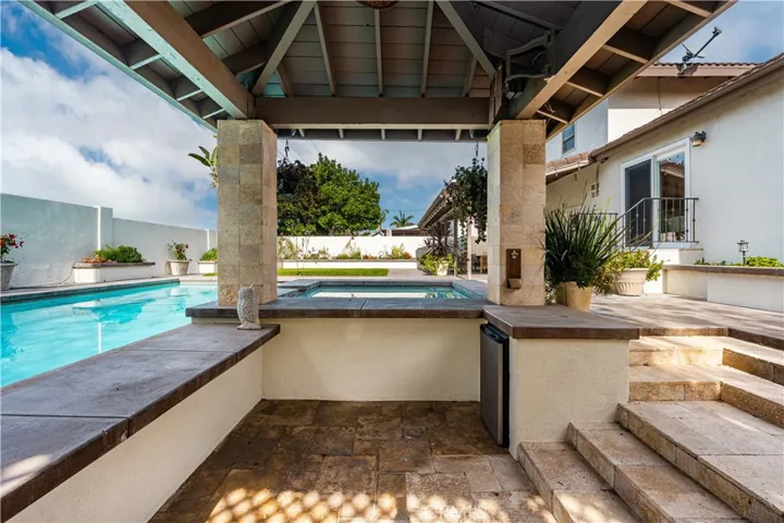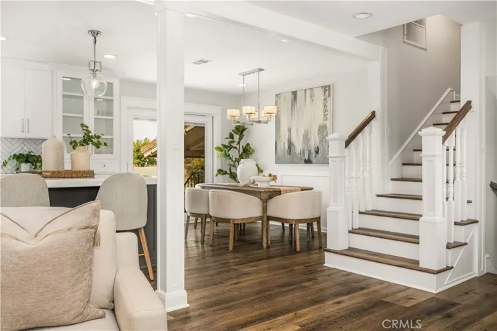 Welcome to this stunning 4-bed, 3-bath multi-level home, completely remodeled throughout with a bright, open floor plan and modern farmhouse charm. From the moment you enter, you’ll appreciate the thoughtfully designed living spaces, upscale finishes, and effortless indoor-outdoor flow—perfect for everyday living and entertaining. The front living room is warm and inviting, featuring a beautiful built-in entertainment center, a front bay window, and classic plantation shutters. It opens seamlessly to the showpiece kitchen, fully upgraded with stainless steel appliances including a 6-burner cooktop & double oven, plus pot filler, designer tile back-splash, marble counter-tops, a large farmhouse sink, and a spacious pantry closet. A large center island offers a prep sink & breakfast bar seating while designer overhead lighting completes the polished look. The adjacent dining area is perfect for casual dining or more formal holiday meals. A sliding door invites you to the rear pool and patio area for outside entertaining. Inside, step-down to the spacious family room, accented with designer tiled fireplace and anchored by a comfortable, relaxed vibe. The lower level also includes a bedroom & ¾ bath—ideal for guests, extended family, or a private home office—along with a convenient laundry room featuring a folding counter, sink, and ample storage. Upstairs, the primary suite is a true retreat, offering new barn-style closet doors, a closet organizer, and a beautifully renovated en suite bath with a walk-in shower, dual-sink vanity, designer tile, custom glass enclosure, and stylish fixtures. 2 additional guest bedrooms with mirrored closet doors are served by a full guest bath with a shower-over-tub, custom tilework and vanity. Throughout the home, gorgeous luxury plank vinyl flooring adds both elegance and durability. Step outside and enjoy a backyard designed for year-round fun and relaxation. Accessed through both the dining area and the family room’s large French doors with sidelights, the outdoor space features a huge covered patio, an in-ground pool and spa, and a sunken, covered BBQ and bar area—an entertainer’s dream! The attached 2-car garage offers built-in storage, roll up door and direct house access. Located in the highly desirable Villa Park Schools attendance area, and close to Orange Lutheran High School, plus popular shopping & dining attractions, this turnkey home offers the perfect blend of style, comfort, and an unbeatable location. Hurry!