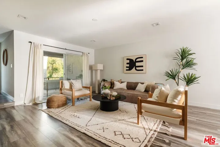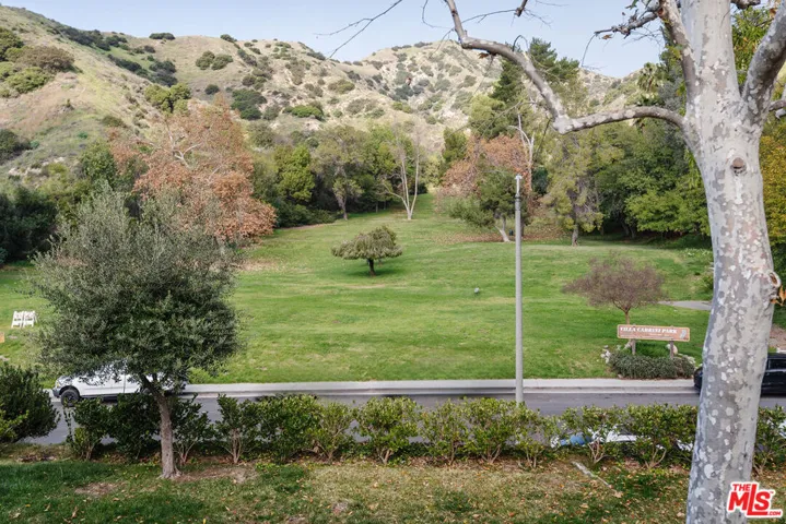 Perched at the top of the hill, this exceptional 2-bedroom, 2.5-bathroom residence occupies one of the most coveted and rarely available locations within The Cabrini Villas — set apart from the majority of the community by its “front row” sweeping park, greenbelt, and mountain views. Tucked into the most sought-after pocket of the complex, this townhome offers serene canyon vistas from the living room and primary bedroom, as well as from the private patio and balcony, creating a seamless indoor-outdoor living experience. Inside, an open and airy layout perfect for entertaining awaits. The living room features sliding doors that open to a private patio — ideal for quiet mornings with coffee, immersive nature views, and visits from families of deer in the park across the way. The living space flows effortlessly into the dining area and a gourmet kitchen with chic dark cabinetry and stainless steel appliances. A stylish half bath for guests completes the main level. Upstairs, two spacious bedrooms include a generously sized primary suite with a walk-in closet featuring customizable built-ins, a private balcony with scenic views of the verdant park and surrounding hills, and a spa-like ensuite bath with an indulgent whirlpool tub, while the second bedroom offers a spacious closet with built-ins and its own stylish ensuite bath. On the lower level, direct access to a private two-car garage is complemented by a versatile bonus room, ideal for a home office or additional storage. The Cabrini Villas community elevates everyday living with an impressive suite of resort-style amenities, including multiple pools and spas, tennis and pickleball courts, basketball and volleyball courts, a playground, clubhouse, 24/7 security, and HOA-covered Spectrum services with cable, high-speed WiFi, Disney+, and HBO Max. Ideally situated near tons of Burbank favorites such as Castaway Burbank, Charlie and Friends, and Tun Lahamajo, with easy access to outdoor adventures at Verdugo Mountain Park and La Tuna Canyon Park’s scenic hiking trails. Adding to the convenience, Burbank Airport is just moments away for quick and effortless getaways — making this a truly special place to call home.