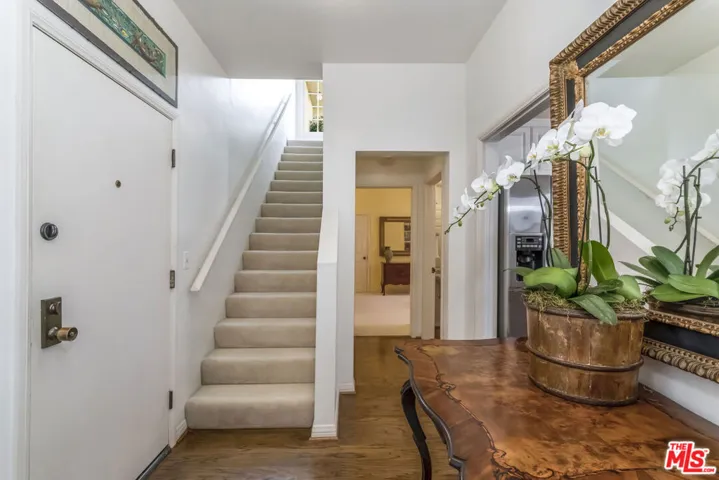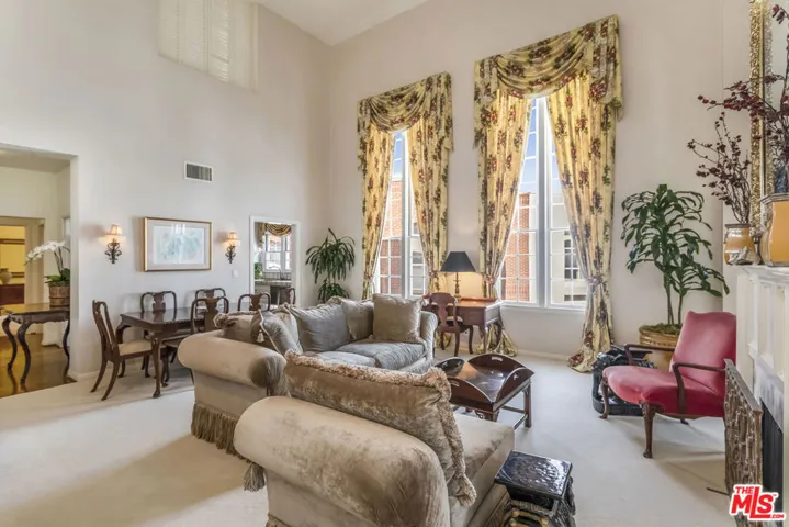 Tucked above the treetops, this enchanting Kensington meets Brentwood penthouse feels worlds away offering a rare garden retreat defined by soaring 18-foot ceilings, elegant proportions, and lush green outlooks from nearly every room. Bathed in natural light, the home unfolds with an exceptional floor plan designed for both intimate living and refined entertaining. Tall, multi-pane windows frame leafy canopies, while classic architectural lines and generous wall height create an unmistakable sense of grace and volume. The living and dining spaces are anchored by timeless finishes, blending soft carpeting with hardwood and tile for a layered, comfortable elegance. French doors open to two private terraces, each surrounded by greenery perfect for morning coffee, evening wine, or quiet reflection among the trees. The primary suite is a true sanctuary, offering substantial square footage, expansive closet space, and a tranquil ambiance rarely found in penthouse living. Throughout the home, thoughtful storage, classic detailing, and modern appliances strike a seamless balance between charm and function. Set within a beautifully landscaped, storybook building, this residence offers a rare combination of privacy, romance, and scale a penthouse that feels more like a private garden estate in the sky.