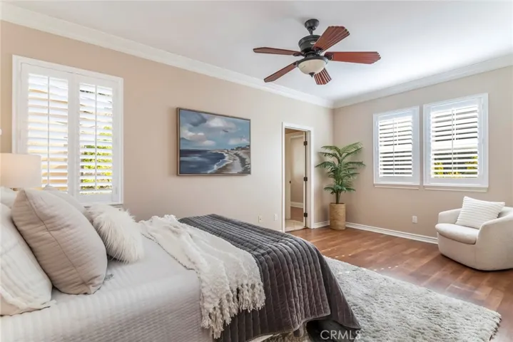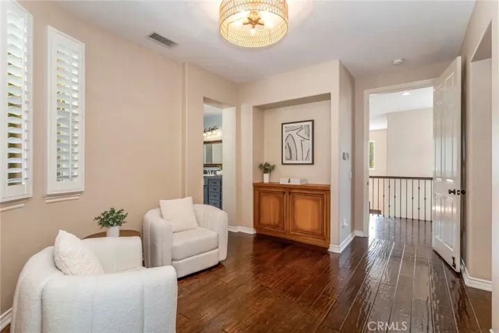 Welcome to this exceptional Executive Pool Estate, set on an expansive 23,000 sq ft lot at the end of a cul-de-sac in the highly desired Southern Oaks neighborhood. As you enter the private gate you will notice the gorgeous curb appeal with an inviting front porch, oversized driveway, and lush landscaping. The home offers 6 bedrooms and 5 bathrooms with over 4,000 sq ft of sophisticated, elegant living space. Inside, you’ll find beautiful neutral tile and warm wood flooring, plantation shutters, inviting Sand Dune paint selections accented by oversized warm white baseboards, modern light fixtures, coordinating spa-like baths with frameless glass, and designer touches throughout. Abundant windows fill the home with natural light. The formal living and dining rooms provide elegant spaces to entertain, while the kitchen and family room feel open and grand ideal for hosting. The kitchen features sleek cabinetry, stainless appliances, granite counters, a breakfast nook, walk-in pantry, and a generous center island. The great room is centered around a cozy fireplace and opens directly to your private backyard retreat. The first floor is complete with a guest bedroom/office and an awesome movie theater featuring tiered flooring, a top-notch media system, and comfortable reclining seating. Upstairs, the primary suite is a luxury retreat with a private balcony, sitting area, and a spacious walk-in closet with custom organizers. The ensuite bath includes marble tile, a soaking tub, dual vanities, a walk-in shower, and a makeup station. The additional bedrooms (one with a private ensuite) are all generously sized with ample closet space. Outside, experience one of the most private and desirable entertainer’s lots in Southern Oaks. The resort style pool with waterslide and waterfalls is complemented by a romantic stacked-stone fireplace and elevated seating area. A BBQ island with Lynx grill, refrigerator, and sink is ideal for the grilling enthusiast. The patio is designed for outdoor entertaining and includes a large TV and built-in heaters. An extended driveway and basketball hoop is a bonus! Modern conveniences include PAID SOLAR, EV charger, upstairs laundry, an office nook, built-in garage storage, and smart-home features allowing control of the gate, thermostat, and pool directly from your phone. HOA amenities include community pool, clubhouse, hiking trails, and parks. Conveniently located near award winning schools, shopping, and easy access to the 5 freeway.