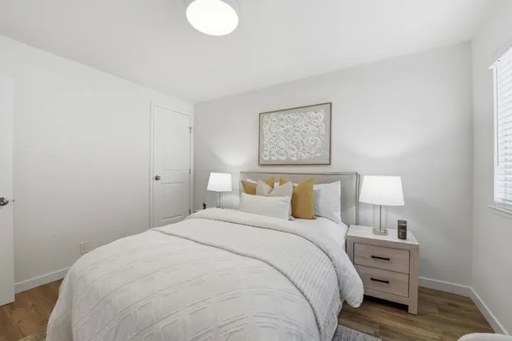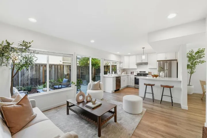 Discover this rarely available, beautifully updated 4-bedroom, 2.5-bath townhouse near the heart of Campbell in the desirable Fairmeadow Community. This light-filled home features a remodeled kitchen with shaker cabinetry and quartz countertops, opening to a family room with sliding doors to a private sun-drenched patio. The spacious living and dining area offers fresh interior paint and updated flooring, creating a bright, welcoming atmosphere. Upstairs, the primary suite features soaring ceilings, generous closet space, and a private en suite bath. Two rear bedrooms overlook the backyard and greenspace with updated closets and added insulation for soundproofing. The fourth bedroom includes hardwired Ethernet, ideal for a home office. Recent upgrades include LVP flooring, updated light fixtures and hardware, new interior doors, high-efficiency HVAC, refreshed landscaping, and a paver patio. Laundry is located in the garage. Enjoy a low-maintenance private backyard. Parking includes a one-car garage, an assigned front space with EV charger, and an additional permitted space. Community amenities include a pool, with walkability to Morgan Park and the Campbell Community Center. Close to shopping, dining, schools, The Pruneyard, Santana Row, Valley Fair, and major commute routes.