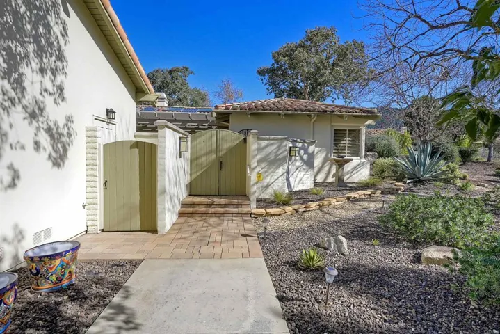 HACIENDA HIDEAWAY! Dreaming of buying a solidly built home with the latest in tasteful style and decor? Stop dreaming and look carefully at this rarely for sale Hacienda located behind the gates of the safe and secure Pauma Valley Country Club Estates with 24/7 security guard gated. A gorgeous courtyard entry leads you to the double front door. Beautiful hardwood floors embellish every room in the house. Cathedral ceilings of wood beams and planks compliment the warm colors as you enter the living room. Two distinguished fireplaces grace the living and dining room while a convenient beverage center with dual wine coolers are steps away. The extended kitchen is well equipped for preparing and serving optimal dining affairs with top of the line stainless steel appliances and ample counter surfaces of granite countertops. Doors from the den/kitchen and dining room leads you to a private side patio perfect for your outdoor grilling. The patio wraps around to the back patio that can arguably be considered the largest patio areas of The Haciendas. The master bedroom and bath feature a walk-in organized closet, double vanity, glass enclosed shower and large soaking tub. A special place is “reserved” for the golf cart in the 2.5 car garage. Pauma Valley Country Club is a private club. New Homeowners are welcomed to apply for Membership. Various Memberships are available.