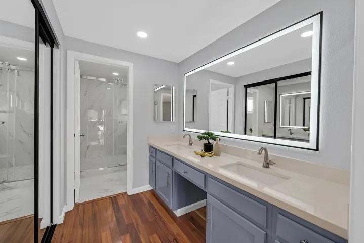 Fabulous Fallbrook Home! Close to Alameda Creek. 4 bedrooms, 2.5 bathrooms, 1800+ square feet, attached 2 car garage with roll up door & opener. Remodeled kitchen features: Quartz countertops & full backsplash, stainless steel appliances include new gas range & oven, microwave, dishwasher, sink & LG refrigerator. New cabinet doors & hardware, tile flooring, recessed lighting, loads of cabinet space including pantry cabinet. Downstairs is engineered wood flooring. Upstairs is tiger wood flooring. Dining area features lots of windows for natural light. Living room w/ fireplace, wood mantle & stone surround & hearth, under staircase storage,& volume ceilings. Remodeled half bath with new quartz vanity top, tile floors, new toilet. Large primary bedroom with raised panel double door entry, large walk in closet w/ mirrored closet doors. Primary bath with state of the art mirror, dual sink vanity w/quartz top, new fixtures,tile flloring, oversized walk in shower,new shower doors,fixtures, & toilet. Remodeled hall bath w/new tile shower, quartz vanity top, tile flooring, & toilet. All bedrooms feature mirrored closet doors.Aggregate concrete decking in backyar plus built in BBQ. Central Heat & A/C,newer water heater,dual pane windows, freshly painted interior.