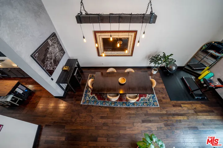 If you enjoy loft living, welcome to this stunning, remodeled top-floor loft, a true entertainer’s dream tucked into the Marina’s most dynamic and creative streets. Thoughtfully curated with high-end finishes and smart design, this condo blends dramatic architecture with modern comfort. Soaring 17+ foot ceilings and a wall of floor-to-ceiling windows flood the space with loads of natural light, framed by a custom motorized drapery that adds a bold designer touch. The open-concept layout includes a custom speakeasy-style bar, perfect for unwinding after a long day or kicking off an evening of entertainment or relaxation. The kitchen is a showpiece, featuring quartz countertops and a suite of top-tier appliances including a Viking Pro refrigerator, Ilve range, and Fisher & Paykel dishwasher. Both bathrooms are elevated with copper sinks, marble counters, custom-tiled showers, smart mirror lighting, and Toto bidet toilets. A private guest bedroom with en-suite bath is located on the main level, while the upstairs mezzanine hosts a spacious primary suite with a walk-in closet, room for a home office, and serene architectural views. Additional highlights include new HVAC 2024, custom cabinetry and doors, upgraded lighting, EV charging, guest parking, and a community rooftop deck with city views. Custom furnishings are negotiable with sale. Some images have been digitally altered to reflect lighter furniture.