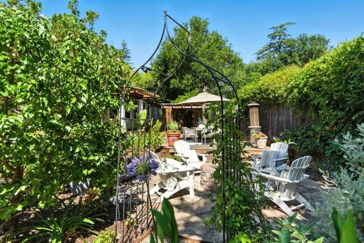 Hidden gem on nearly half an acre behind a private gated entry with professionally landscaped grounds, mature orchard trees, & year-round blooms. The exceptional single-level 3 bedroom, 3 bath 1,842 sqft main residence was completely renovated in 2017 & features an open, light-filled floor plan with skylights & French Oak floors throughout. The entry opens to a spacious living room with custom built-ins & designer lighting, flowing seamlessly into the chef’s kitchen with a large center island, Thermador appliances, & dining area. Multiple glass doors open to a stunning 400+/-sq ft lanai, creating effortless indoor/outdoor living. The primary suite retreat with spa-like bath featuring Italian porcelain tile, mosaic marble floors, chandelier, & custom closet. Outdoor living spaces include multiple seating areas, an outdoor kitchen, & gas fire pit, ideal for entertaining year-round. A detached garage offers approx. 687 sqft of flexible space for guest suite or home office, plus an additional 600+/- sqft basement. Additional features include a private well & potential to add an ADU or expand further. Ideally located moments from Village shops & restaurants, hiking & biking trails, Edgewood Park, Stanford University, major tech campuses, & Interstate 280. Excellent Woodside schools.