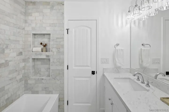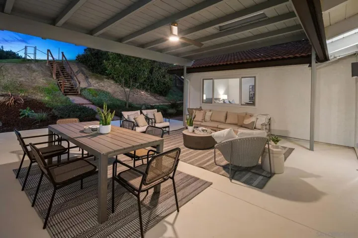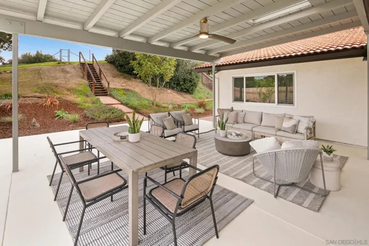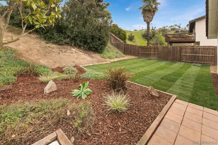 Tucked away on a serene Bonita Highlands cul-de-sac, this immaculate single-story residence rests on an expansive lot exceeding 1/3 of an acre and showcases a stunning, thoughtful transformation. A lush, manicured front lawn, classic curb appeal, an oversized driveway, and a three-car garage set a welcoming first impression. Inside, a light-filled open floor plan unfolds with a spacious living room balanced by a generous dining area and expansive family room, all unified by wide-plank luxury vinyl flooring. The beautifully remodeled gourmet kitchen is the heart of the home, appointed with Bianco Mountain quartz countertops, designer white oak slim-shaker cabinetry, stainless steel appliances with gas cooking, a floating pantry, and an oversized island with additional seating. The kitchen flows seamlessly into the voluminous family room, highlighted by vaulted wood-planked and beamed ceilings and a sleek modern gas fireplace, while large sliding doors invite indoor-outdoor living beneath the vaulted covered patio with skylights and ceiling fan. The private backyard retreat offers an exceptional balance of lush lawn, curated hardscape, and mature succulents, with an upper grassy terrace that captures rolling hill views and provides gated access to scenic walking trails just beyond the fence. Back inside, the spacious primary suite serves as a tranquil escape, featuring a generous walk-in closet and a custom ensuite with dual sinks, quartz countertops, white oak designer cabinetry, and a beautifully designed walk-in shower. Three additional well-proportioned bedrooms and a stylishly remodeled hall bath with dual sinks and custom tile complete the interior. Additional highlights include a newer A/C condenser, solar, dual-pane windows, recessed lighting, two new skylights, ceiling fans, and abundant storage throughout. Ideally located just minutes from community horse trails, Sunnyside Elementary, Bonita Golf Course, local shops and dining, and premier hiking and biking at Sweetwater Summit Regional Park, this exceptional home offers the perfect blend of comfort, design, and lifestyle.