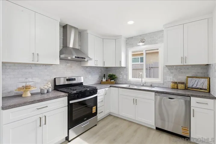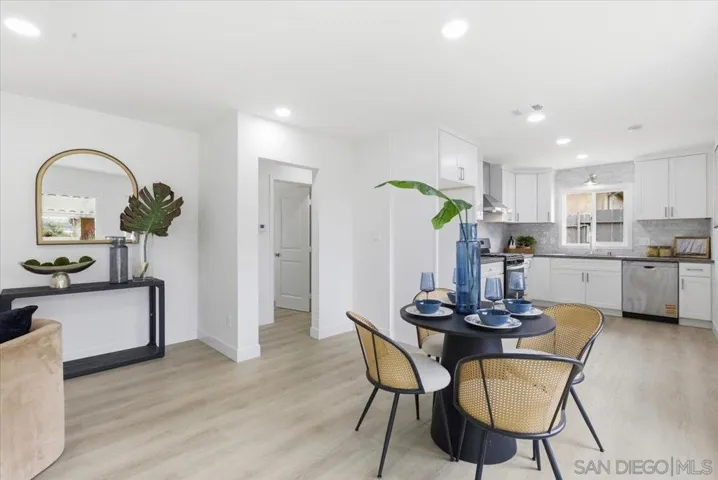 Exquisitely remodeled 3 bed, 2 bath home in desirable Allied Gardens with timeless coastal farmhouse design. Bright open floor plan with a modern kitchen featuring quartz countertops and stainless-steel appliances. Spacious primary suite offers a spa-like bath with oversized shower, dual-sink vanity, and walk-in closet. Major upgrades include all-new plumbing with main sewer line, new water heater, HVAC with new A/C, and dual-pane windows. Backyard features a large covered patio with sweeping hillside views. The nice sized driveway offers the ability to park multiple cars or potential RV parking. Ideally located near top-rated schools, parks, shopping, and easy freeway access.