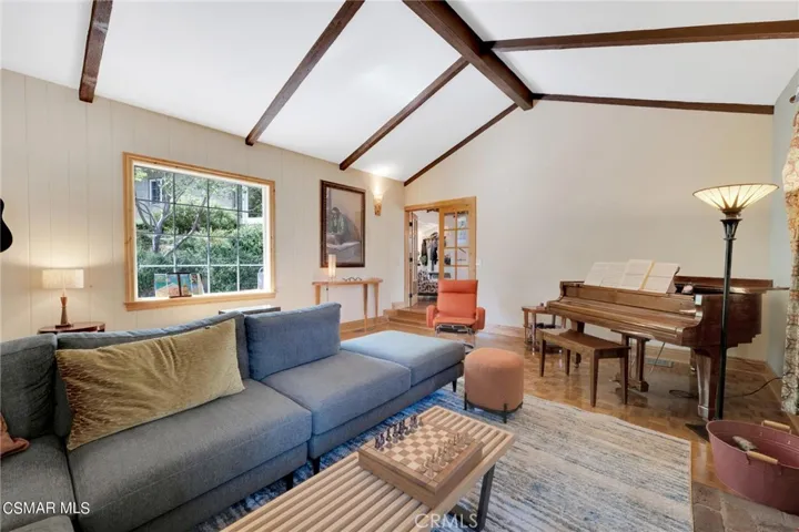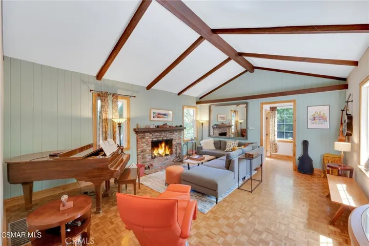 The main home features five well-appointed bedrooms and three-and-a-half baths. Kitchen has granite counters and fabulous chef grade appliances (including refrigerator) There is an ”eat-up” bar as well as a built-in table and chairs. Off the kitchen is a large, inviting room perfect for casual meals, homework sessions, or morning coffee, while a second, oversized family room provides an ideal space for movie nights, game days, or entertaining on a grand scale. With multiple living areas, everyone has room to spread out while still feeling connected. Primary bathroom has his and hers closets, spa tub and separate shower, and access to private garden area shaded by a 300 year old Oak Tree. The pool are spa are thoughtfully designed with a spacious Baja beach–style walk-in entry, making it especially appealing for children and relaxed lounging. Adjacent to the pool is a fire pit and a dedicated pool house with a full bath, offering flexible use as an entertainment pavilion, guest space, or private retreat for visitors.